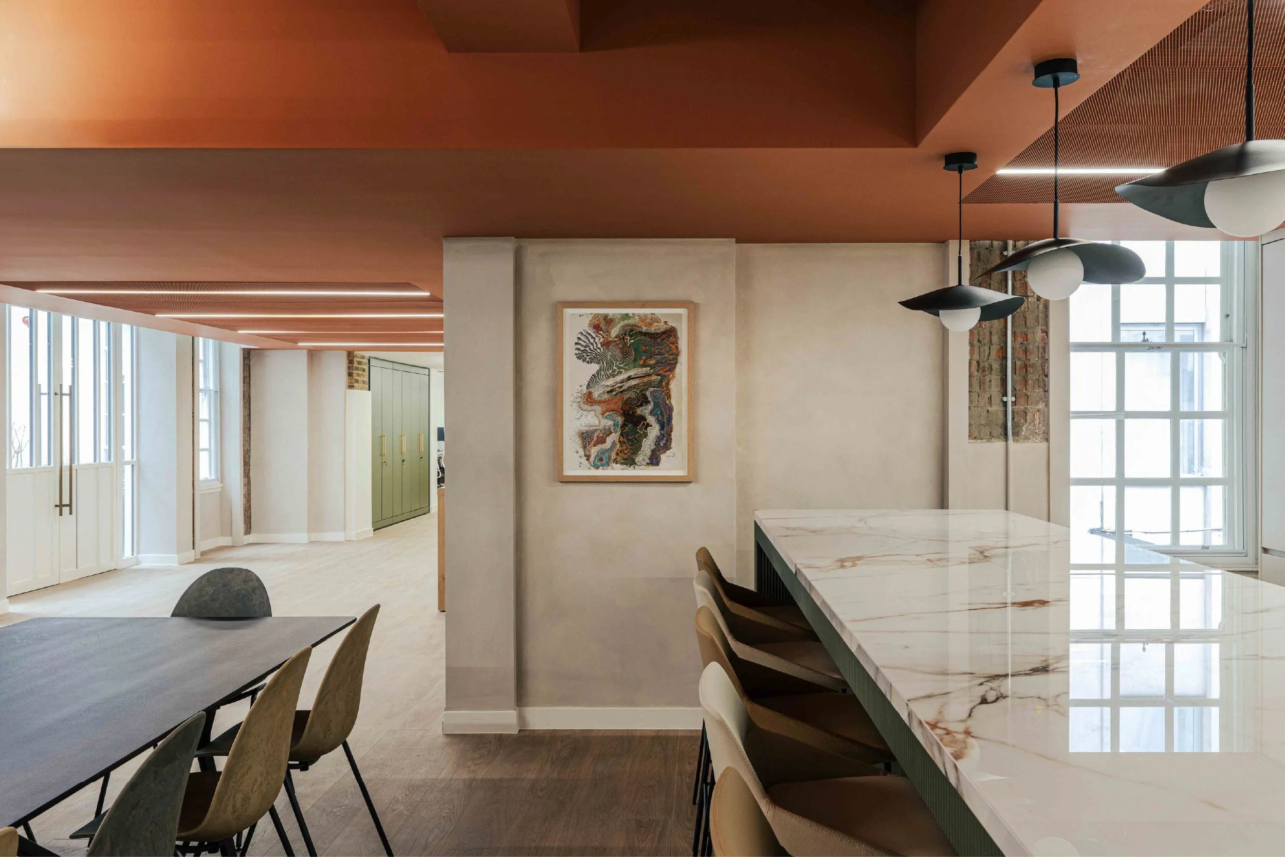 Fusion Group appointed Whitepaper to deliver a CAT B workplace at 20 Thayer Street in Marylebone, creating a refined, design-led office environment that responds to both the building’s heritage and the client’s strong creative identity.