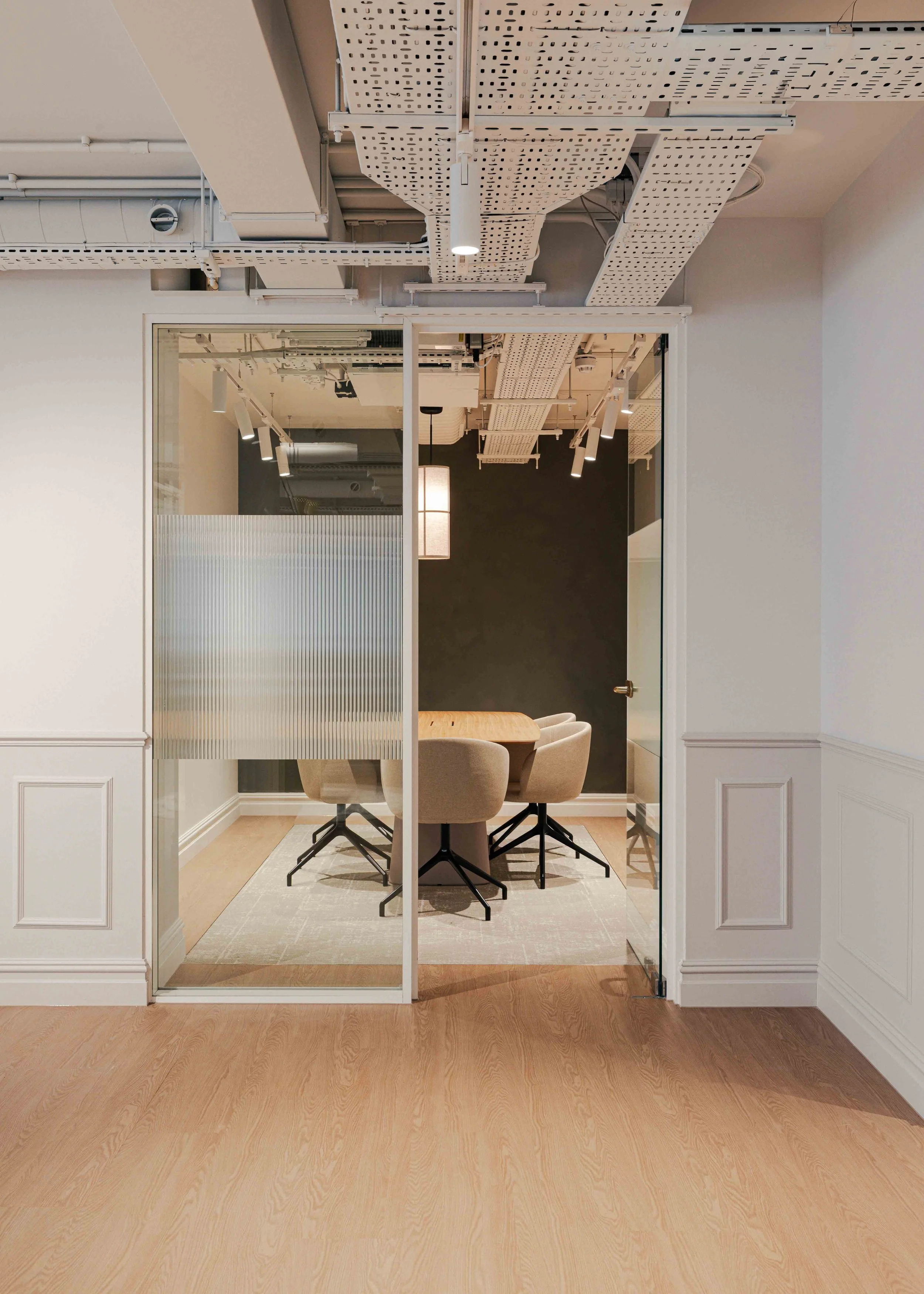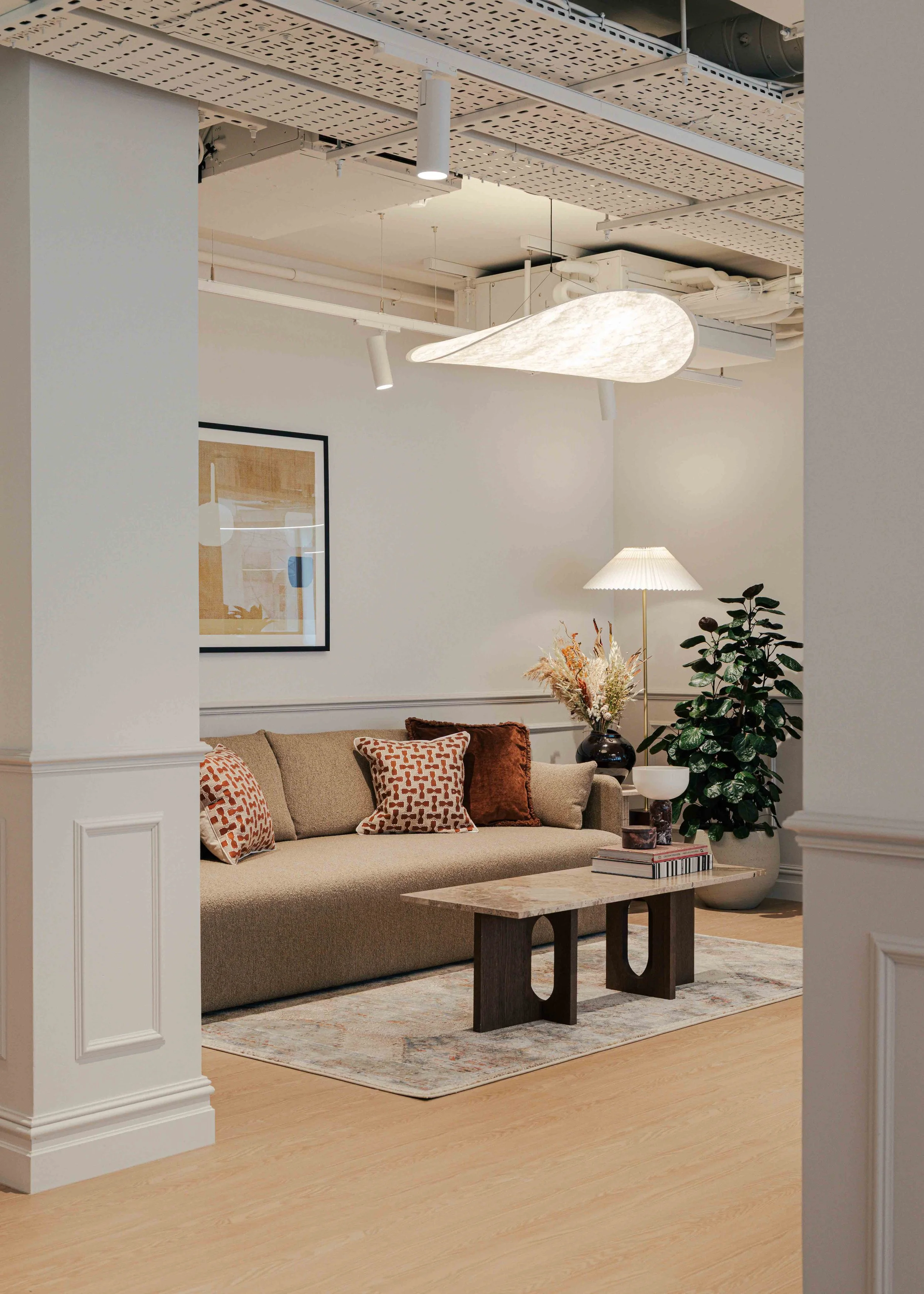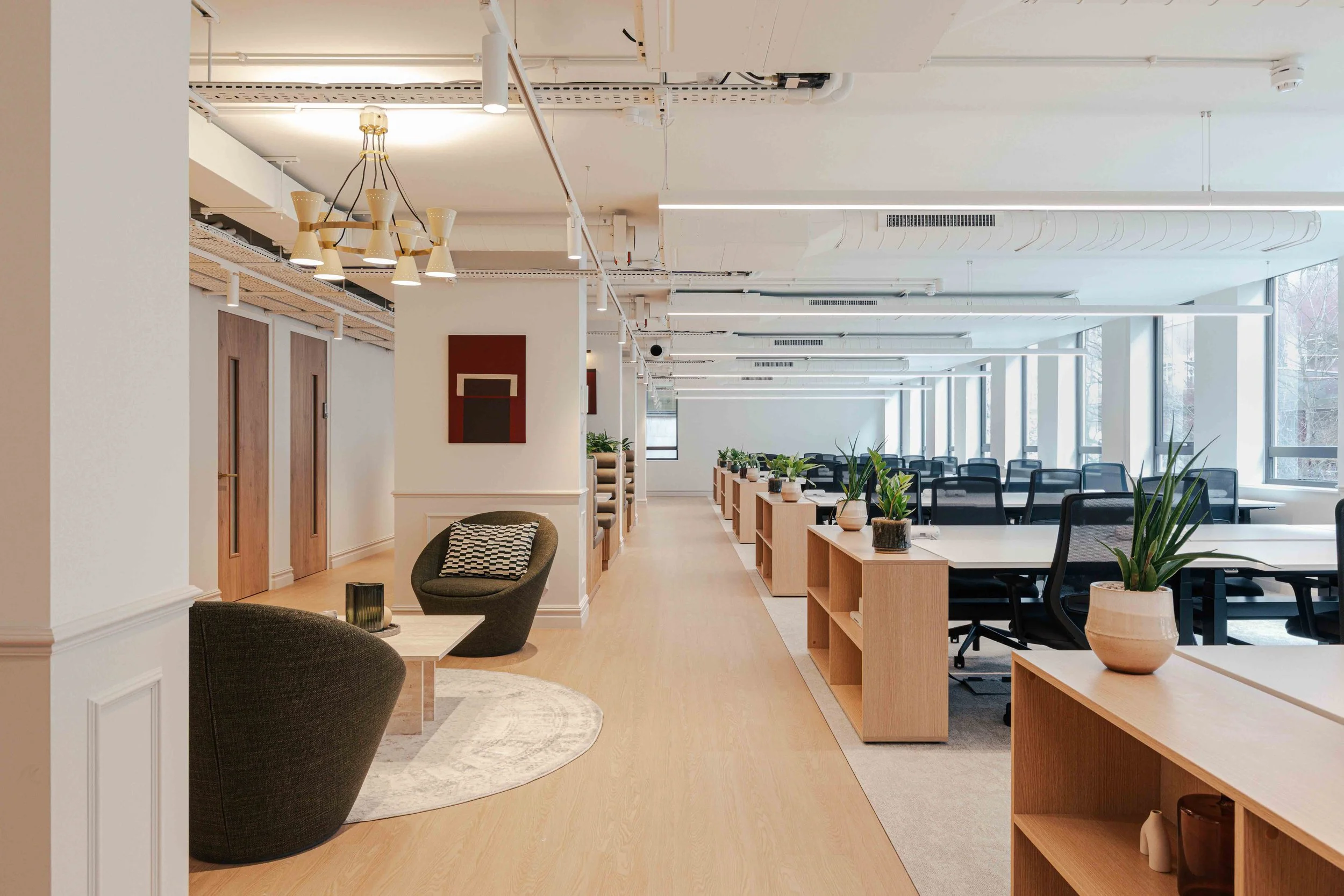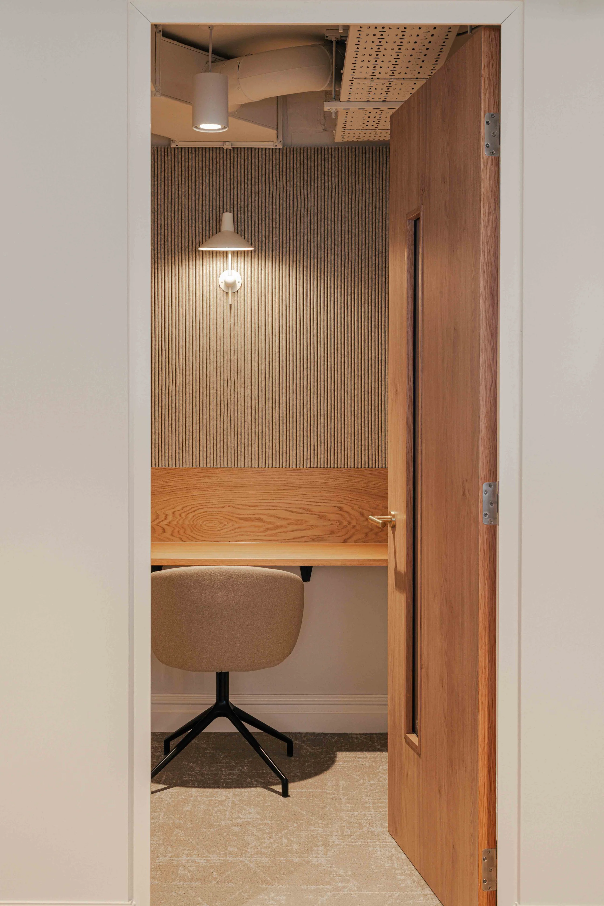 The brief called for a warm and calming arrival experience that moved away from a traditional corporate lobby towards something more inviting and design-led. A bespoke tiled floor anchors the space, adding character and identity from the moment you enter. Warm timber panelling was introduced to soften the environment and bring a residential quality to the reception, creating a welcoming backdrop for the desk and waiting area. Bespoke banquette seating completes the scheme, offering a comfortable, crafted touchpoint that enhances both functionality and atmosphere. Together, these elements deliver a refined, comfortable, and distinctive entrance that sets the tone for the rest of the building.