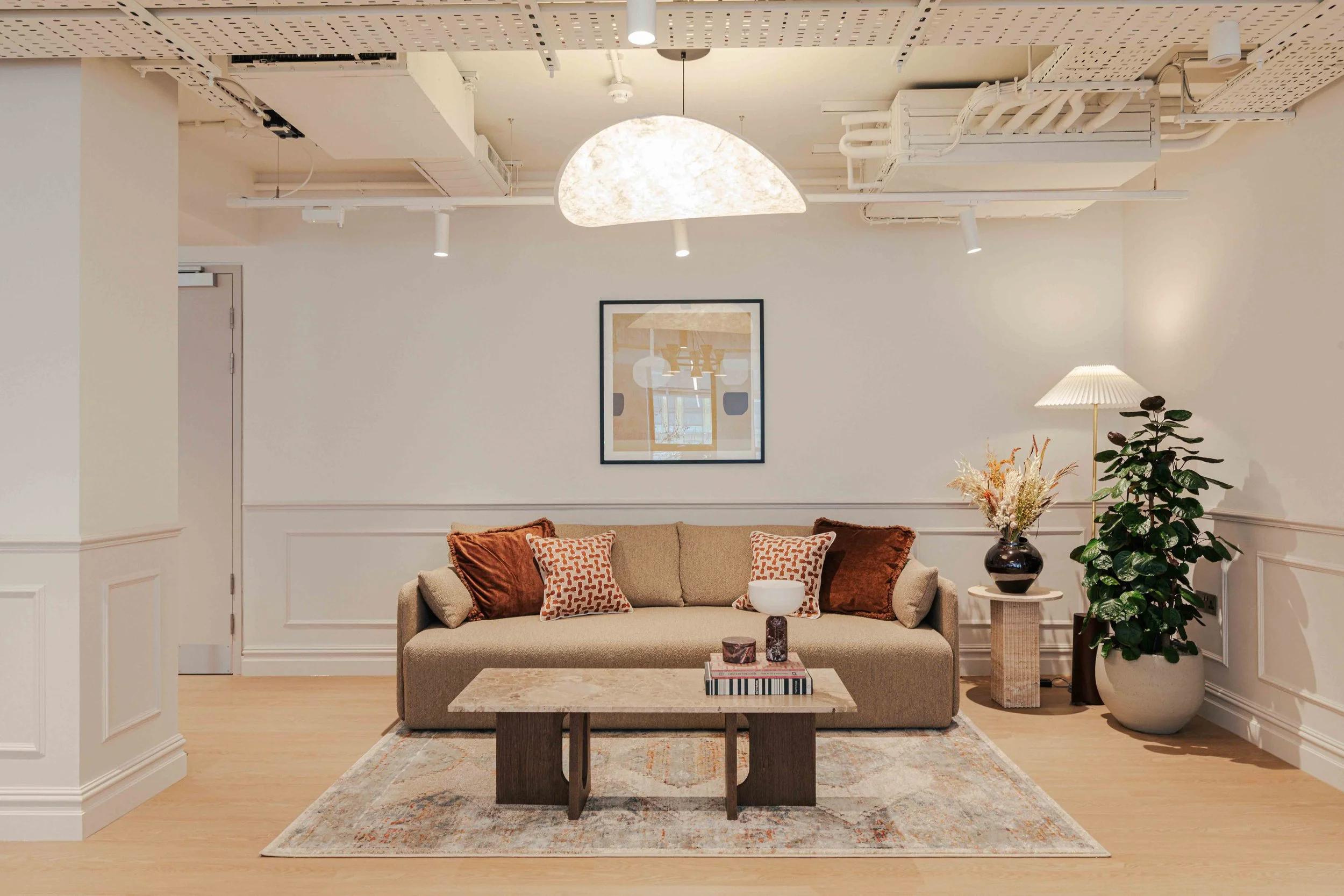 Located at 44–46 Southwark Street, the building sits at the crossroads of Borough Market, Bankside, and London Bridge, an area known for its cultural vibrancy, creativity, and rich material palette. This context played a central role in shaping the design. The warmth of the timber panelling, the handcrafted feel of the bespoke tiles, and the inviting, hospitality-led atmosphere all draw inspiration from Southwark’s blend of heritage and modernity. The result is a reception and tenant lounge that feels rooted in its surroundings, echoing the texture, energy, and character that define the neighbourhood.