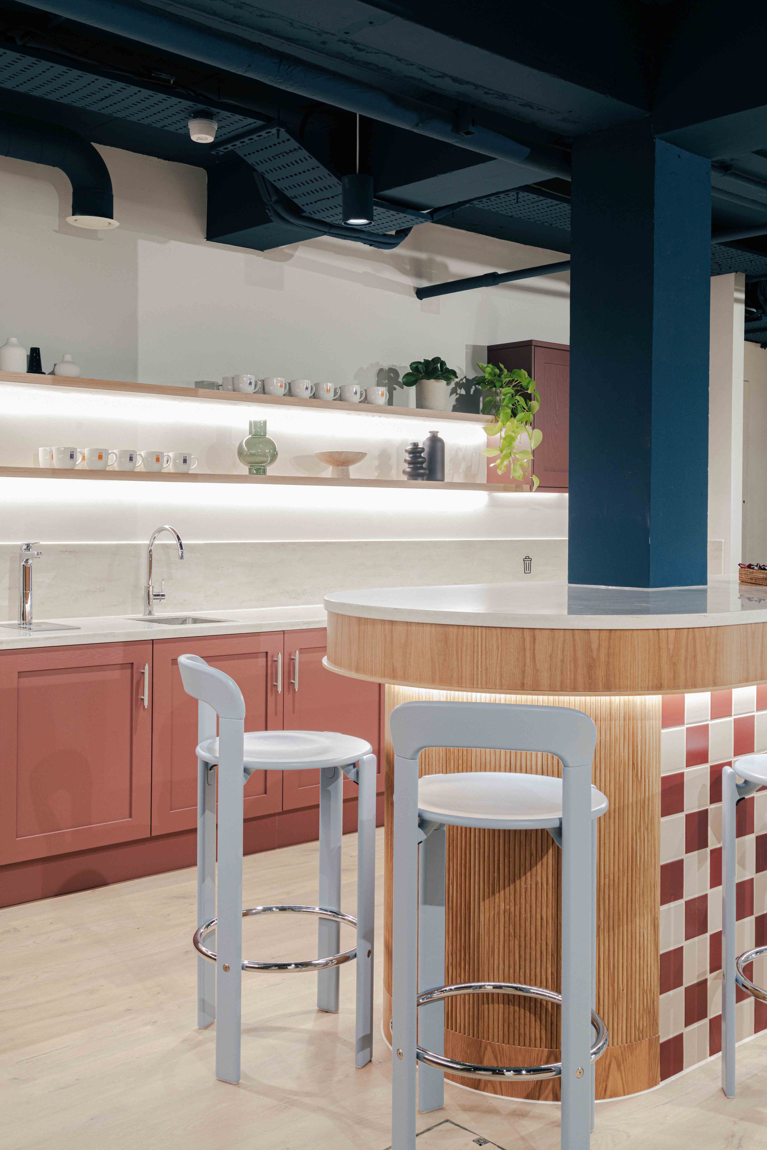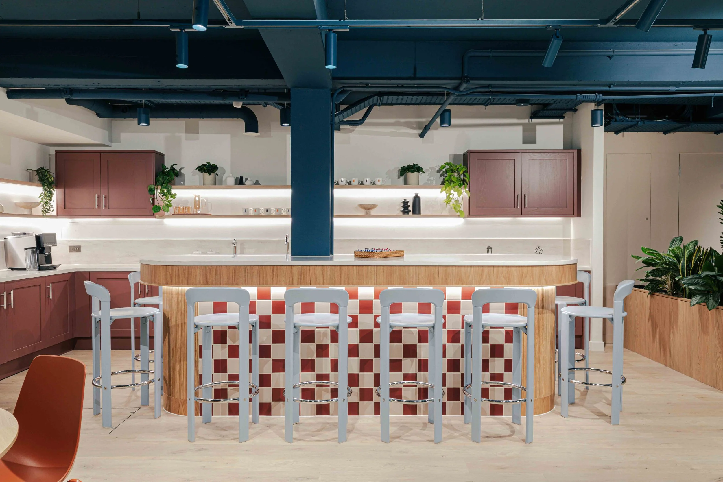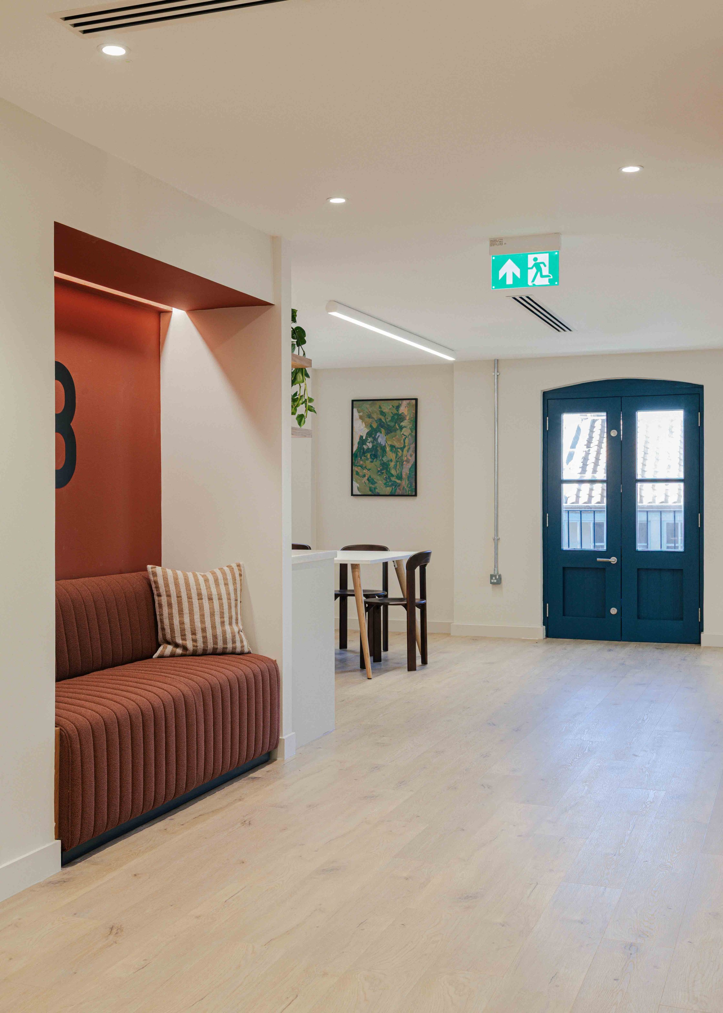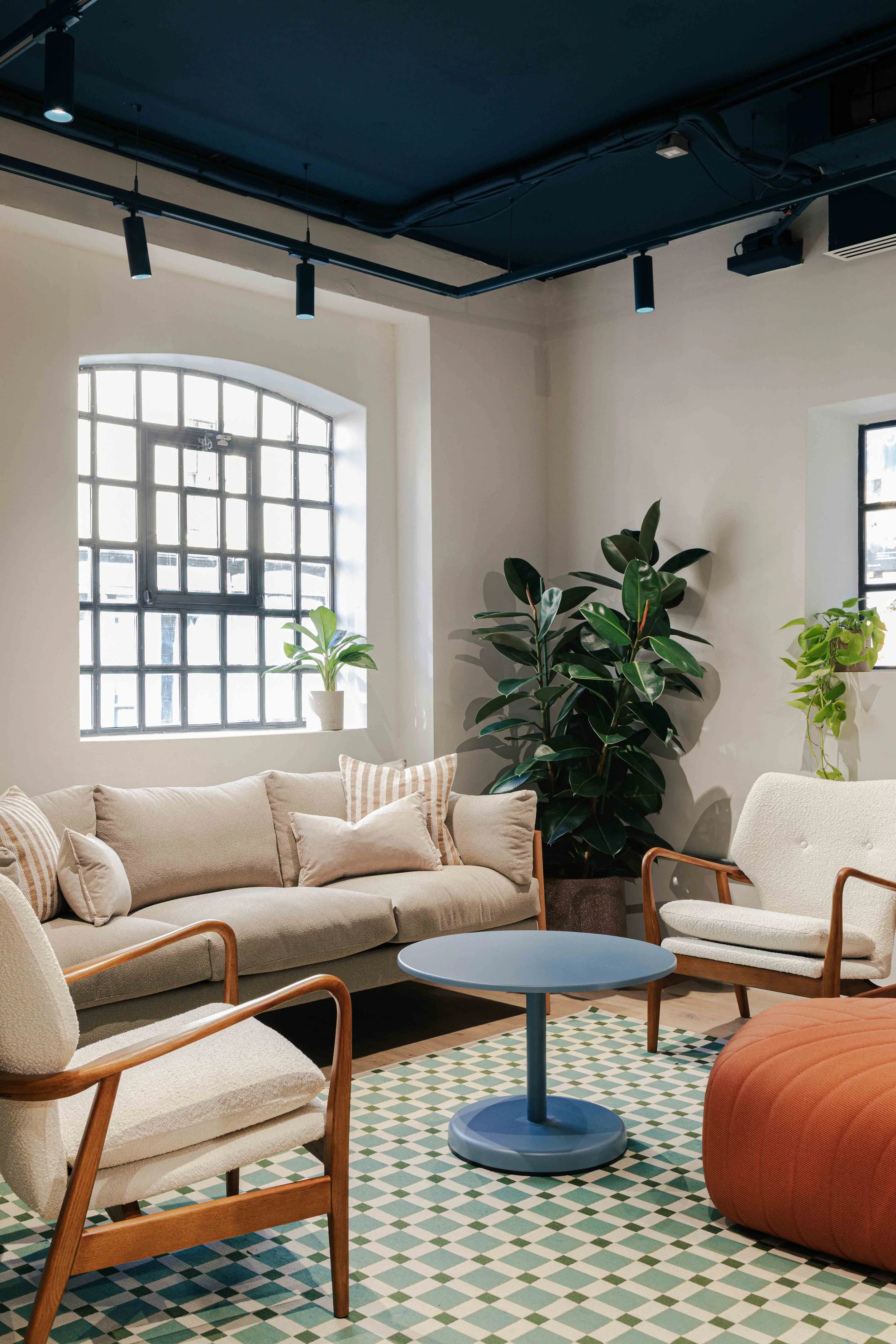 The design concept drew inspiration from the energy and character of Bermondsey Street itself. We unlocked the building’s potential with a bold burst of petrol blue on the façade and key interior elements, giving the asset real kerb appeal and a distinct identity. The area’s rich textile history informed the palette and detailing, exploring woven and textured materials through finishes, furniture, and playful accents. Statement features such as playful tiling and a petrol blue ceiling act as focal points, while the remaining palette is restrained to ensure balance and cohesion throughout the space.