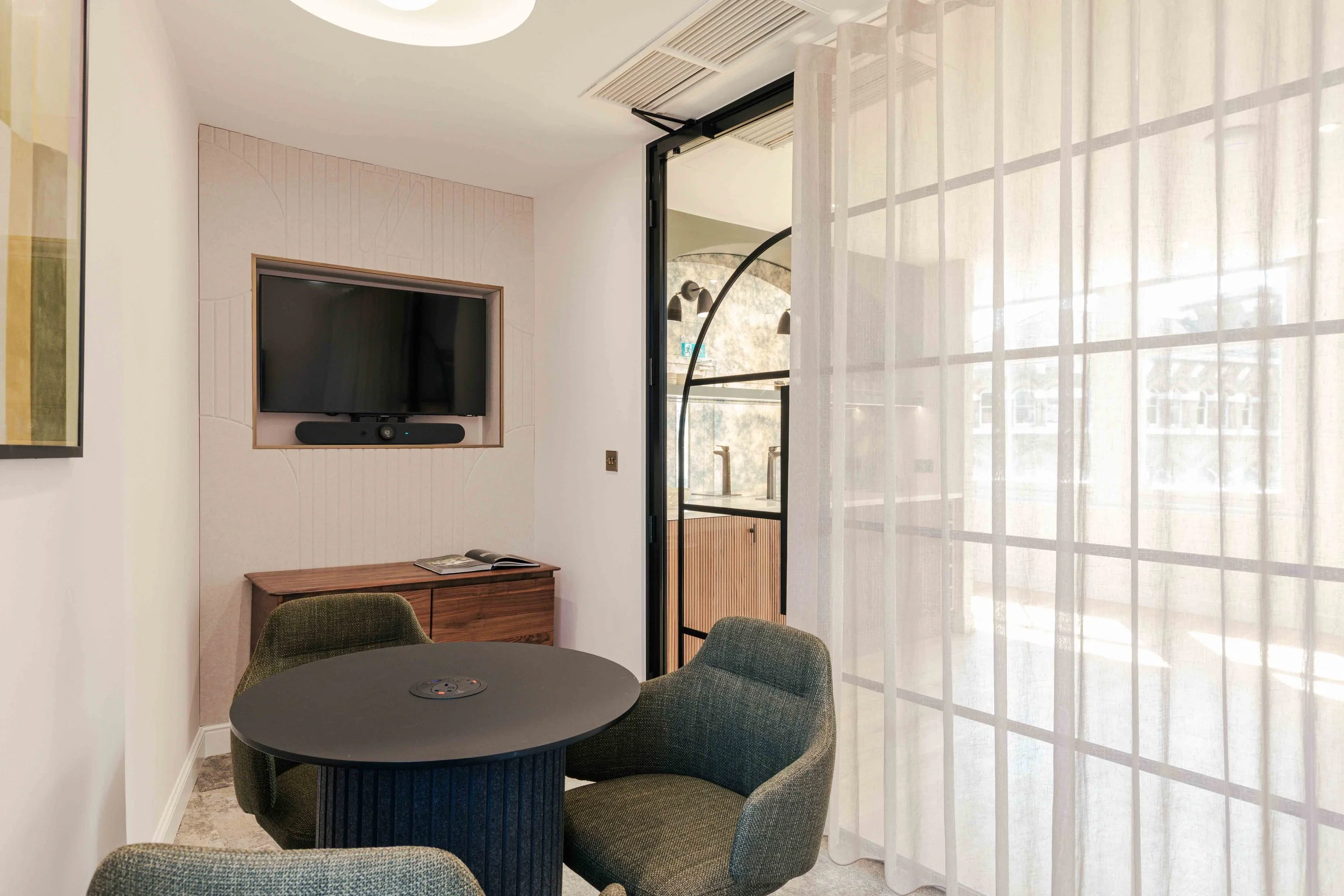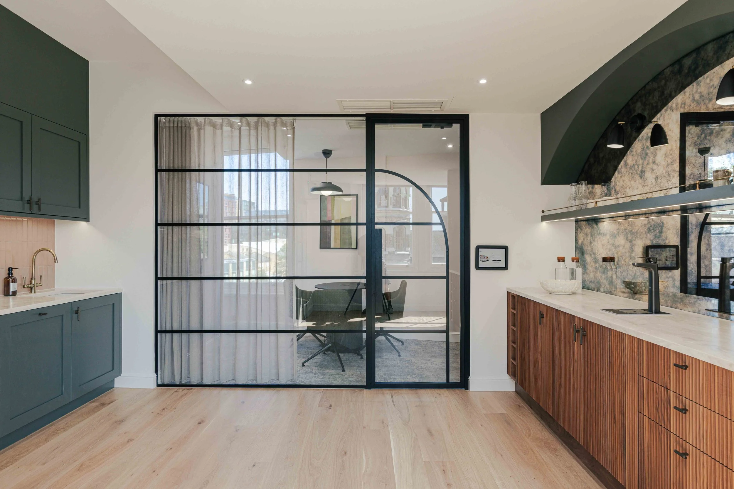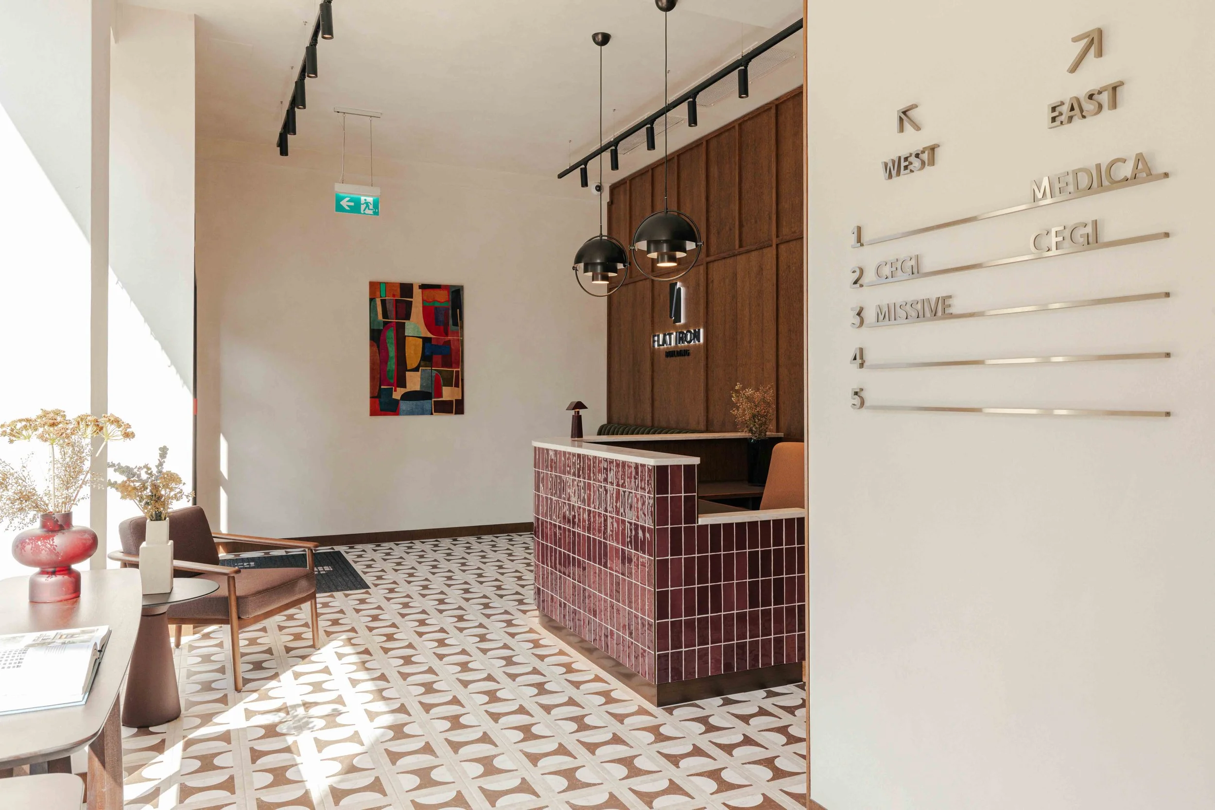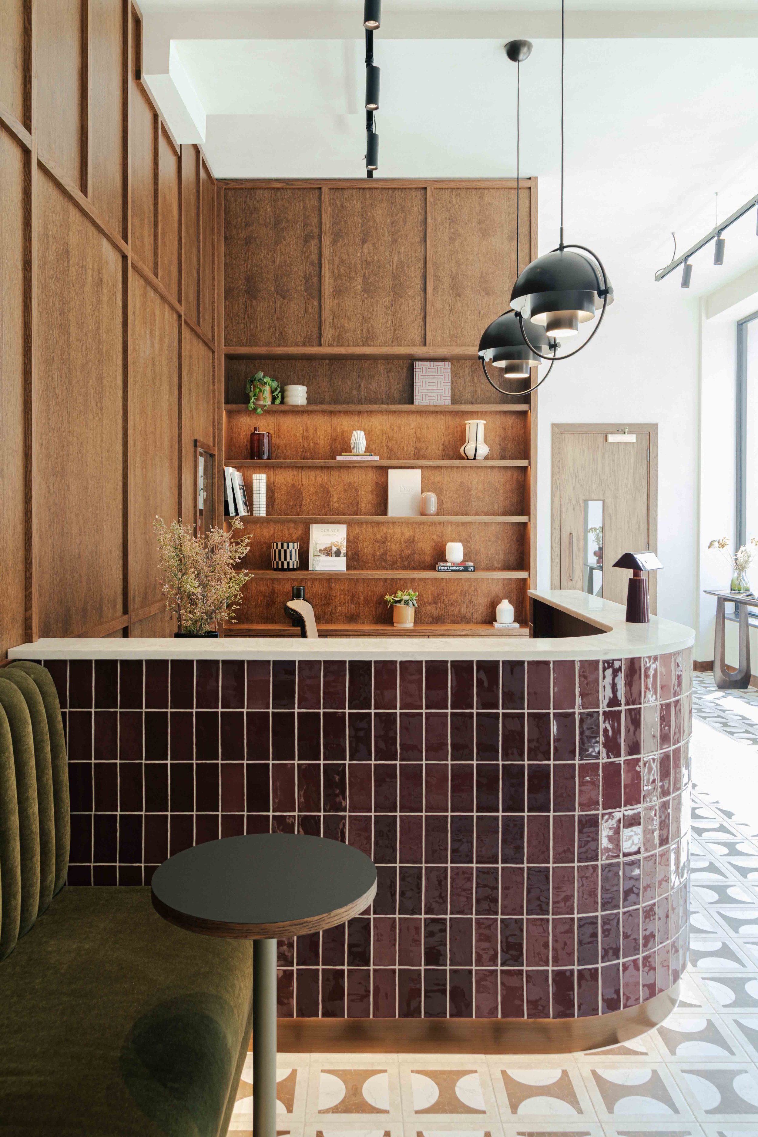 The brief called for a warm and calming arrival experience that moved away from a traditional corporate lobby towards something more inviting and design-led. A bespoke tiled floor anchors the space, adding character and identity from the moment you enter. Warm timber panelling was introduced to soften the environment and bring a residential quality to the reception, creating a welcoming backdrop for the desk and waiting area. Bespoke banquette seating completes the scheme, offering a comfortable, crafted touchpoint that enhances both functionality and atmosphere. Together, these elements deliver a refined, comfortable, and distinctive entrance that sets the tone for the rest of the building.
