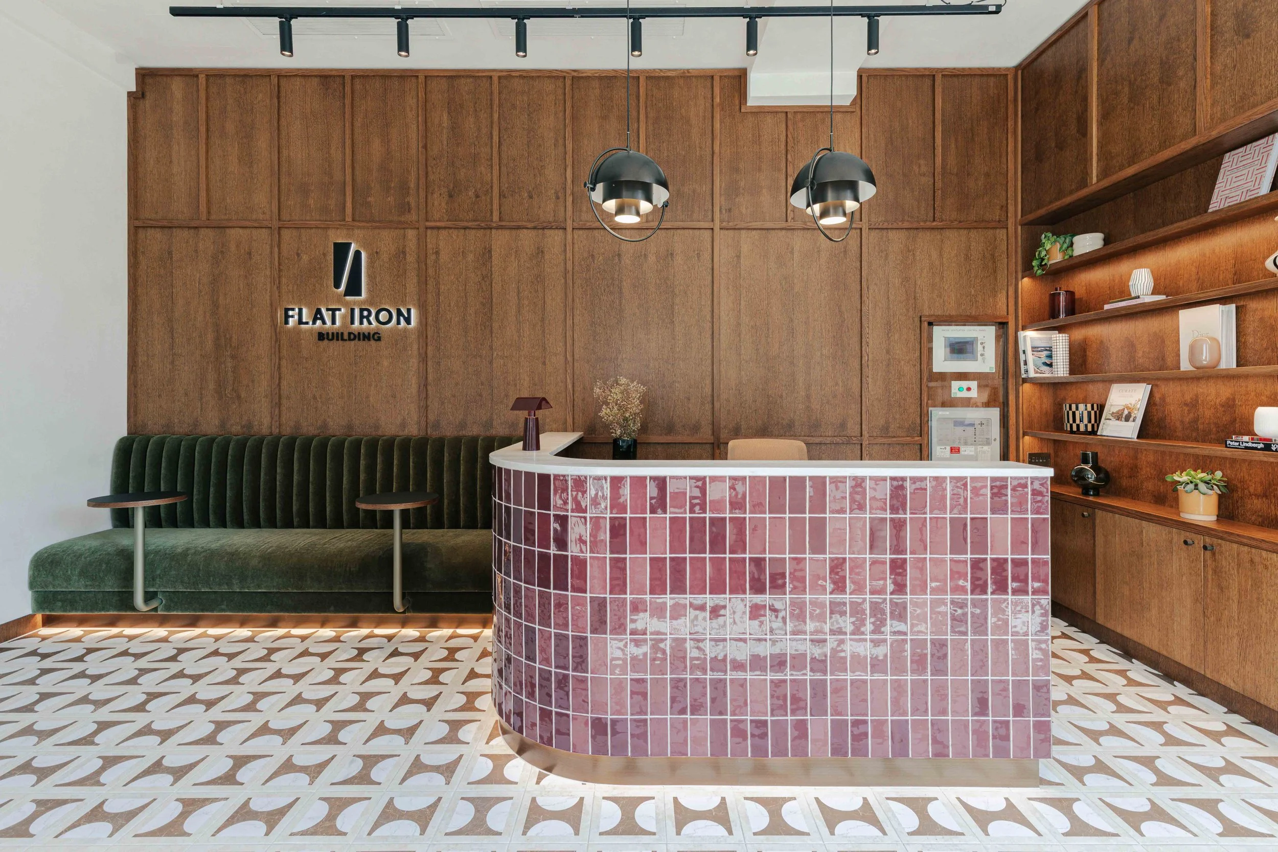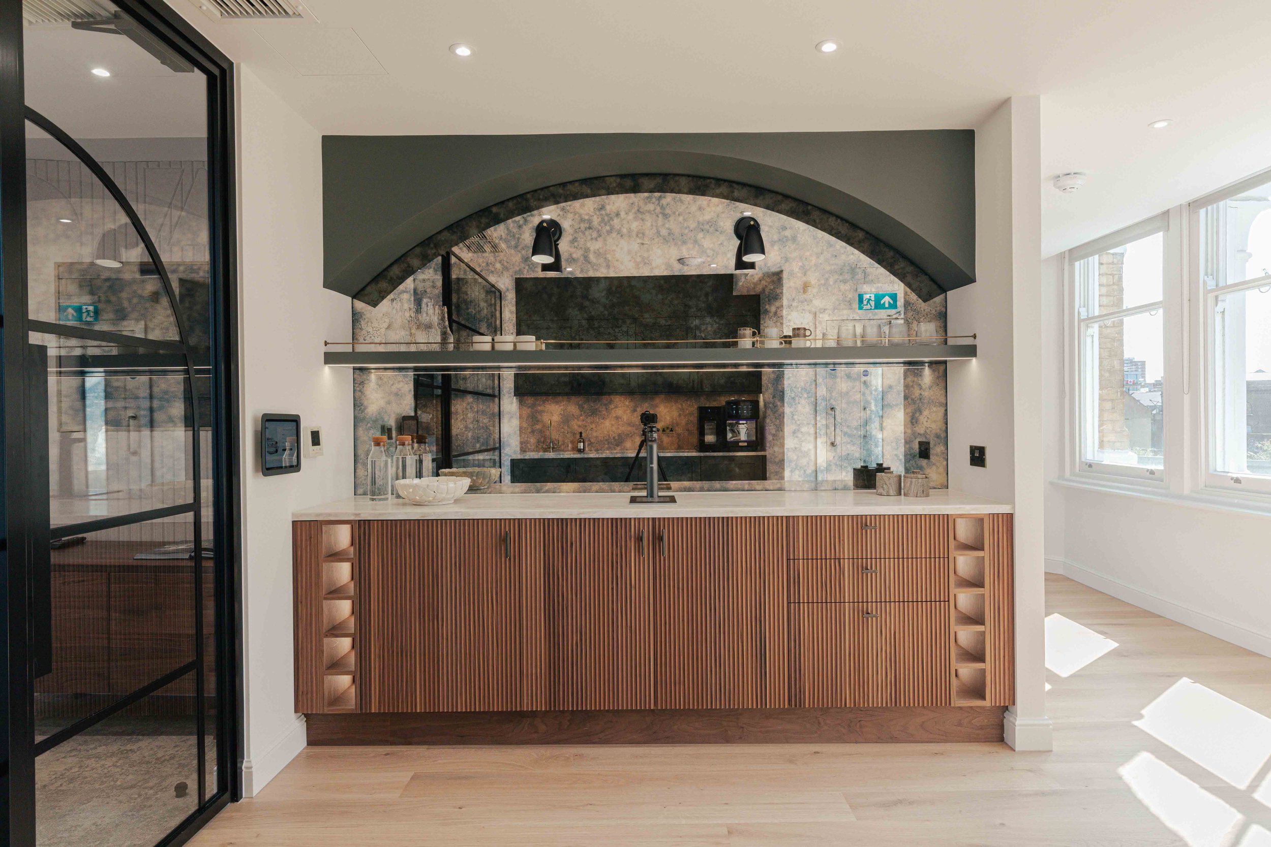 Located at 44–46 Southwark Street, the building sits at the crossroads of Borough Market, Bankside, and London Bridge, an area known for its cultural vibrancy, creativity, and rich material palette. This context played a central role in shaping the design. The warmth of the timber panelling, the handcrafted feel of the bespoke tiles, and the inviting, hospitality-led atmosphere all draw inspiration from Southwark’s blend of heritage and modernity. The result is a reception and tenant lounge that feels rooted in its surroundings, echoing the texture, energy, and character that define the neighbourhood.