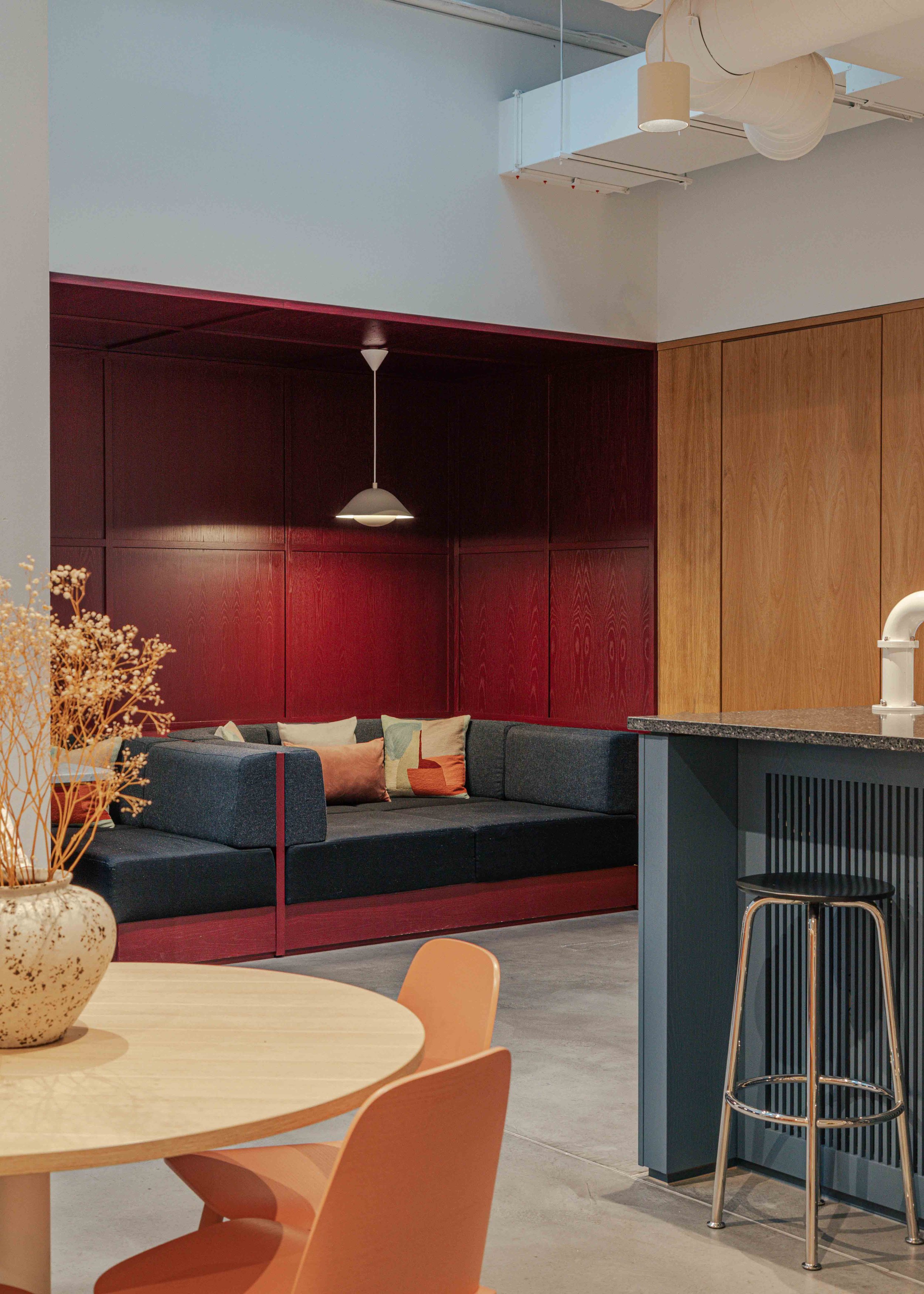 The brief called for a warm and calming arrival experience that moved away from a traditional corporate lobby towards something more inviting and design-led. A bespoke tiled floor anchors the space, adding character and identity from the moment you enter. Warm timber panelling was introduced to soften the environment and bring a residential quality to the reception, creating a welcoming backdrop for the desk and waiting area. Bespoke banquette seating completes the scheme, offering a comfortable, crafted touchpoint that enhances both functionality and atmosphere. Together, these elements deliver a refined, comfortable, and distinctive entrance that sets the tone for the rest of the building.