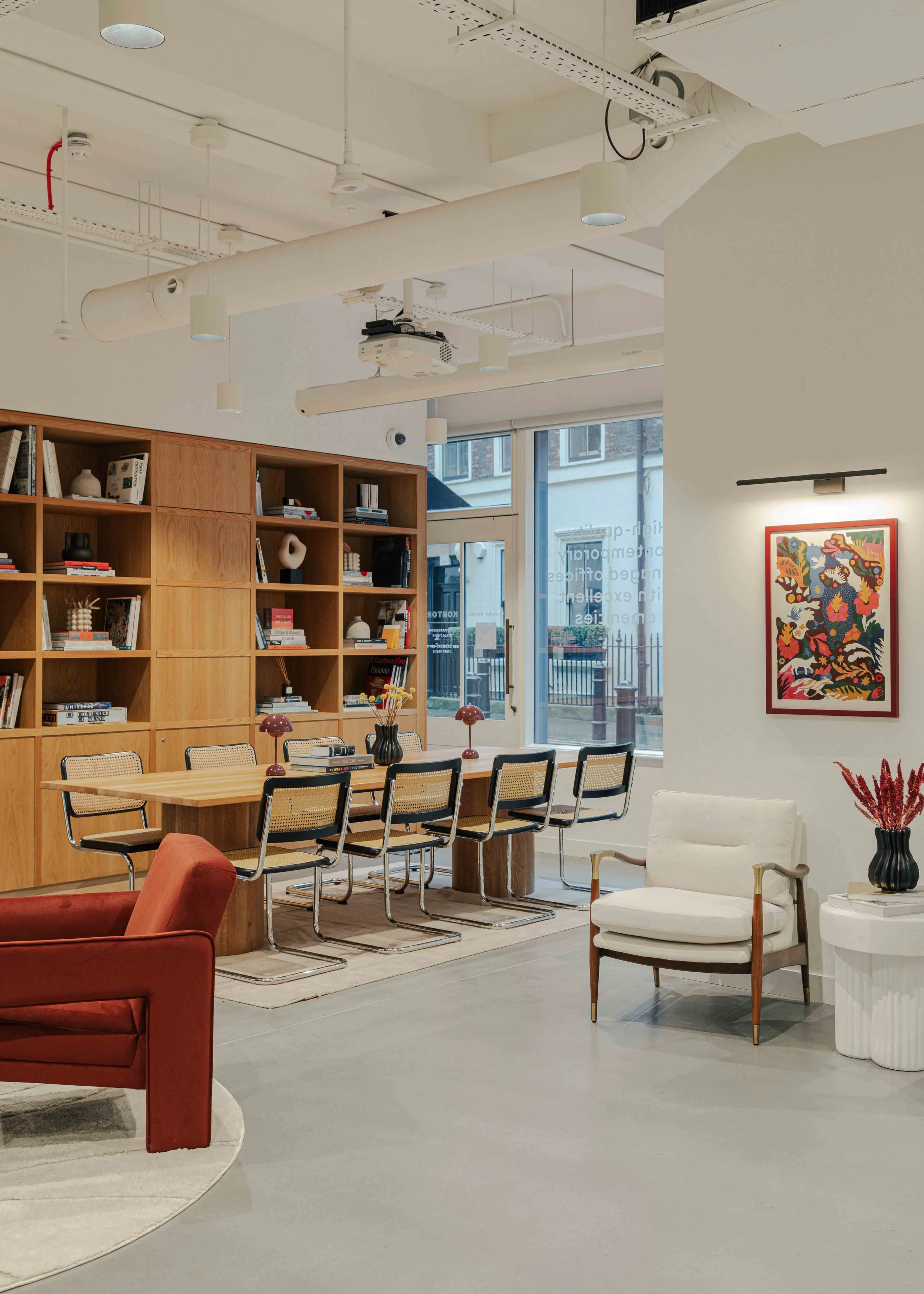 Located at 44–46 Southwark Street, the building sits at the crossroads of Borough Market, Bankside, and London Bridge, an area known for its cultural vibrancy, creativity, and rich material palette. This context played a central role in shaping the design. The warmth of the timber panelling, the handcrafted feel of the bespoke tiles, and the inviting, hospitality-led atmosphere all draw inspiration from Southwark’s blend of heritage and modernity. The result is a reception and tenant lounge that feels rooted in its surroundings, echoing the texture, energy, and character that define the neighbourhood.