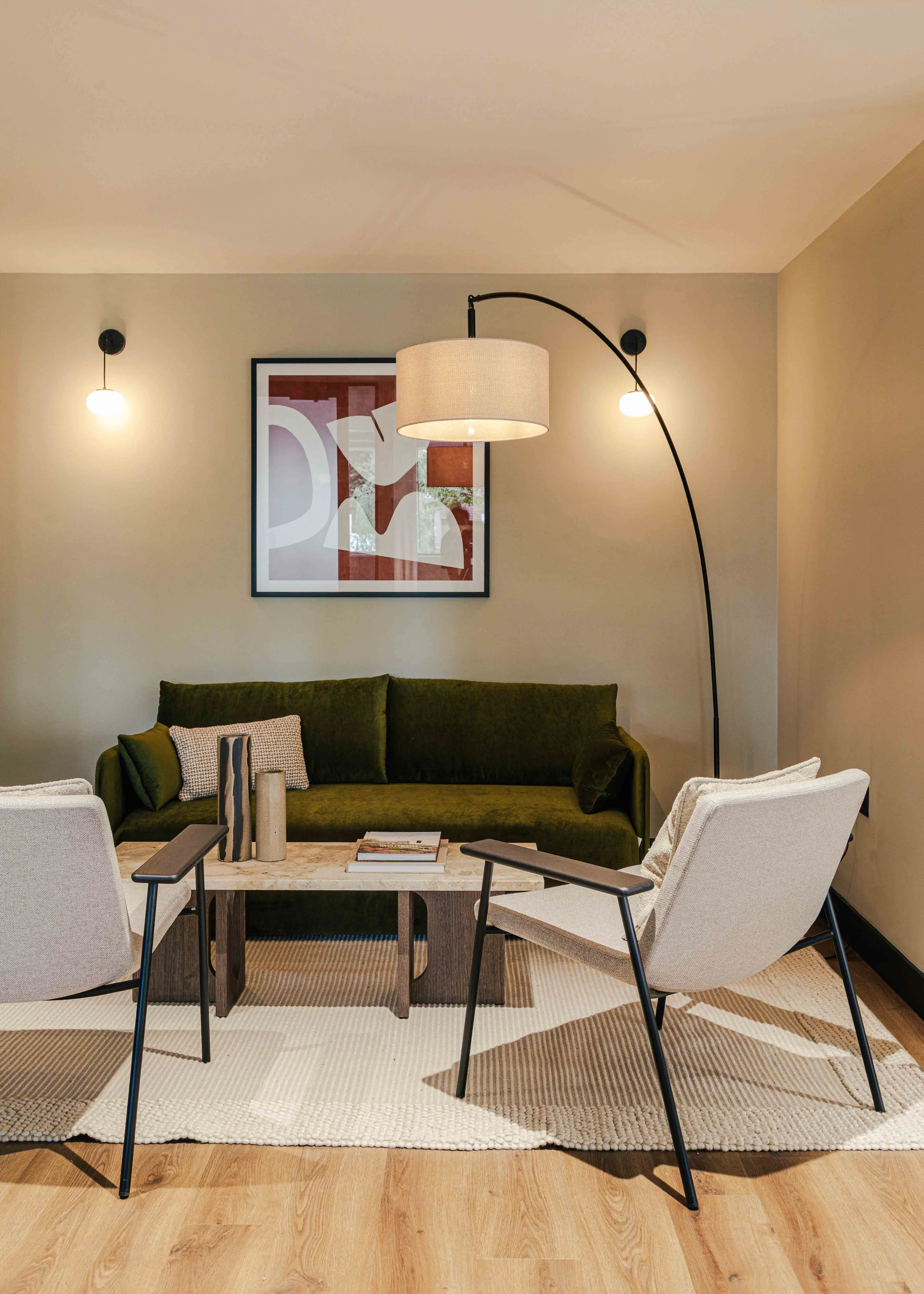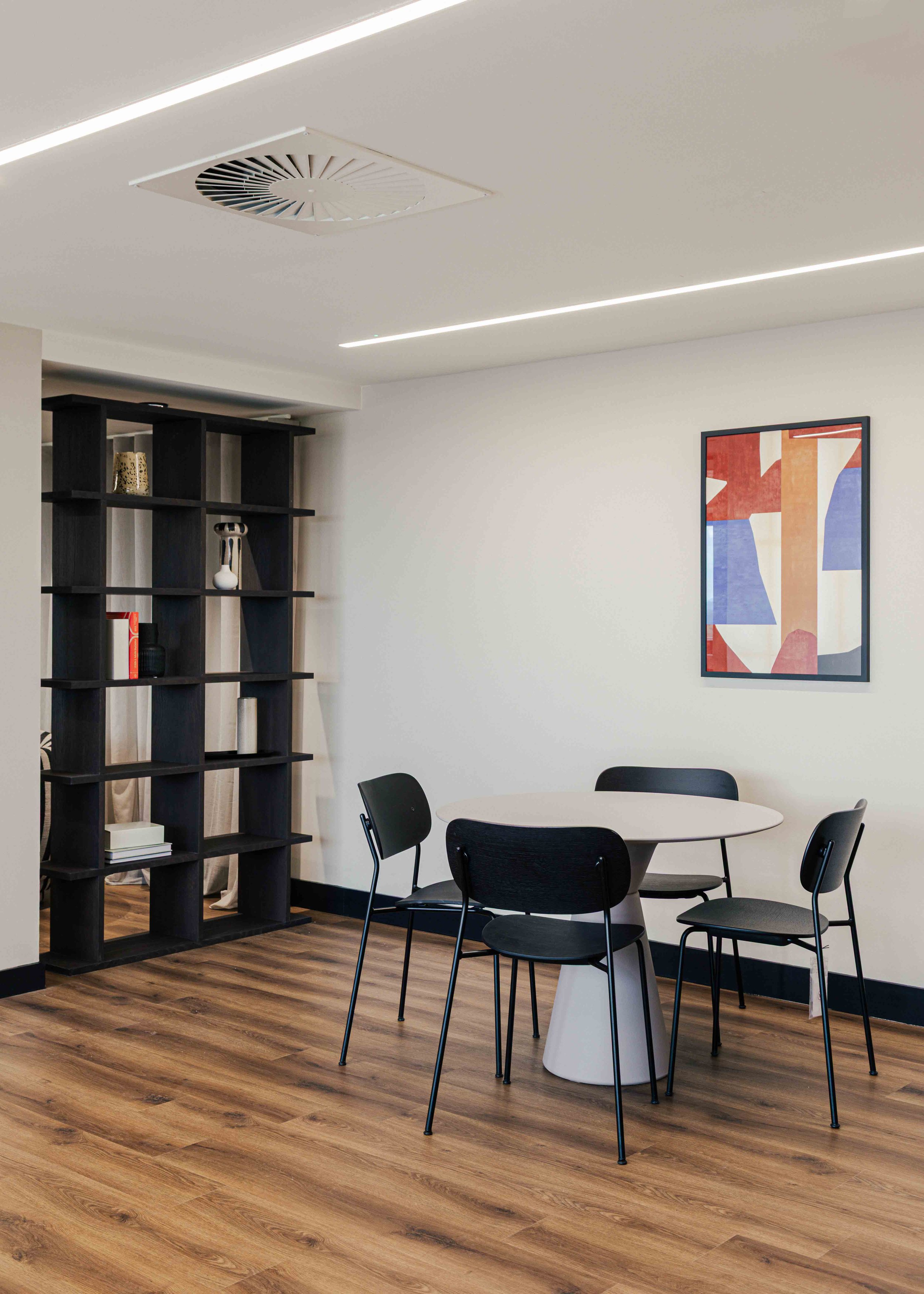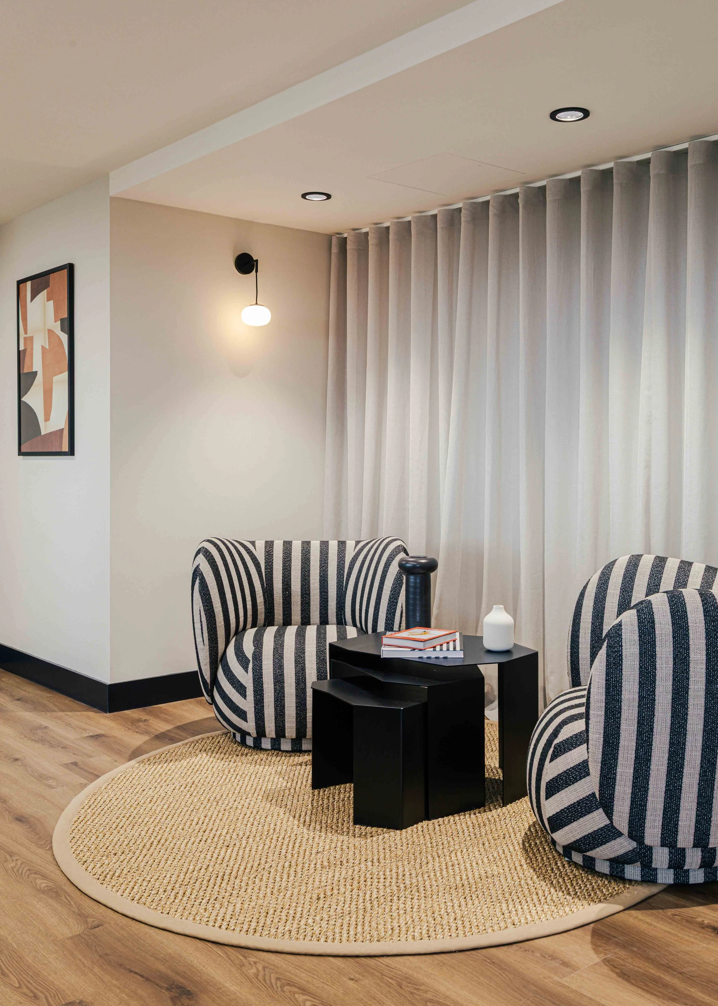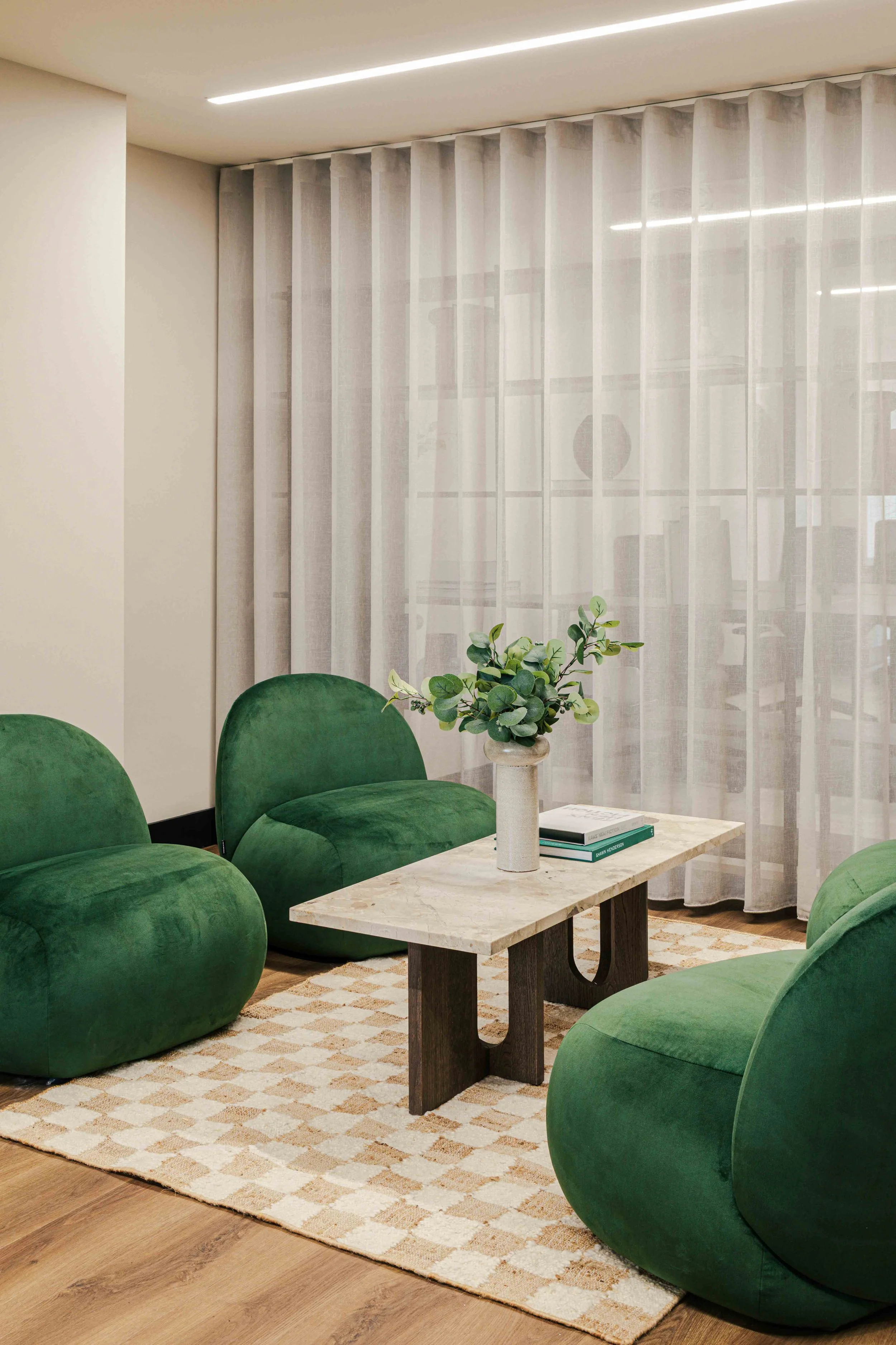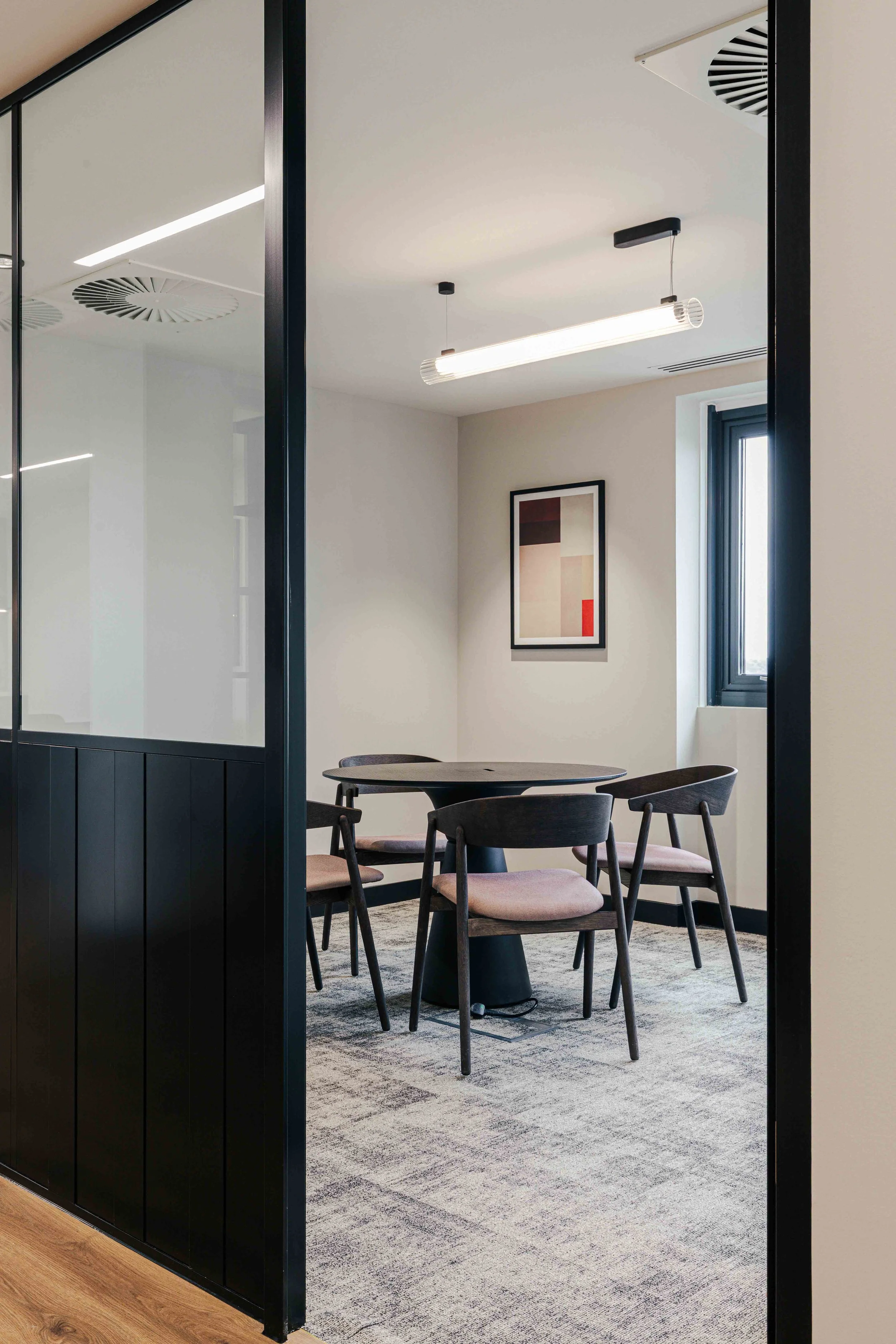 The brief called for a warm and calming arrival experience that moved away from a traditional corporate lobby towards something more inviting and design-led. A bespoke tiled floor anchors the space, adding character and identity from the moment you enter. Warm timber panelling was introduced to soften the environment and bring a residential quality to the reception, creating a welcoming backdrop for the desk and waiting area. Bespoke banquette seating completes the scheme, offering a comfortable, crafted touchpoint that enhances both functionality and atmosphere. Together, these elements deliver a refined, comfortable, and distinctive entrance that sets the tone for the rest of the building.