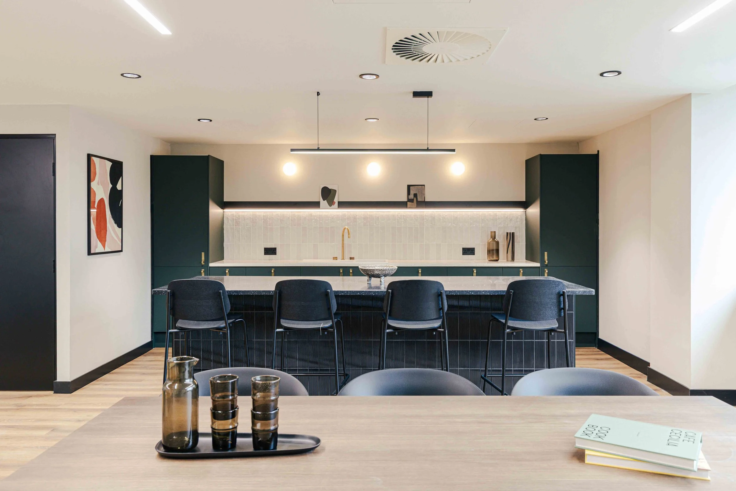 Located at 44–46 Southwark Street, the building sits at the crossroads of Borough Market, Bankside, and London Bridge, an area known for its cultural vibrancy, creativity, and rich material palette. This context played a central role in shaping the design. The warmth of the timber panelling, the handcrafted feel of the bespoke tiles, and the inviting, hospitality-led atmosphere all draw inspiration from Southwark’s blend of heritage and modernity. The result is a reception and tenant lounge that feels rooted in its surroundings, echoing the texture, energy, and character that define the neighbourhood.