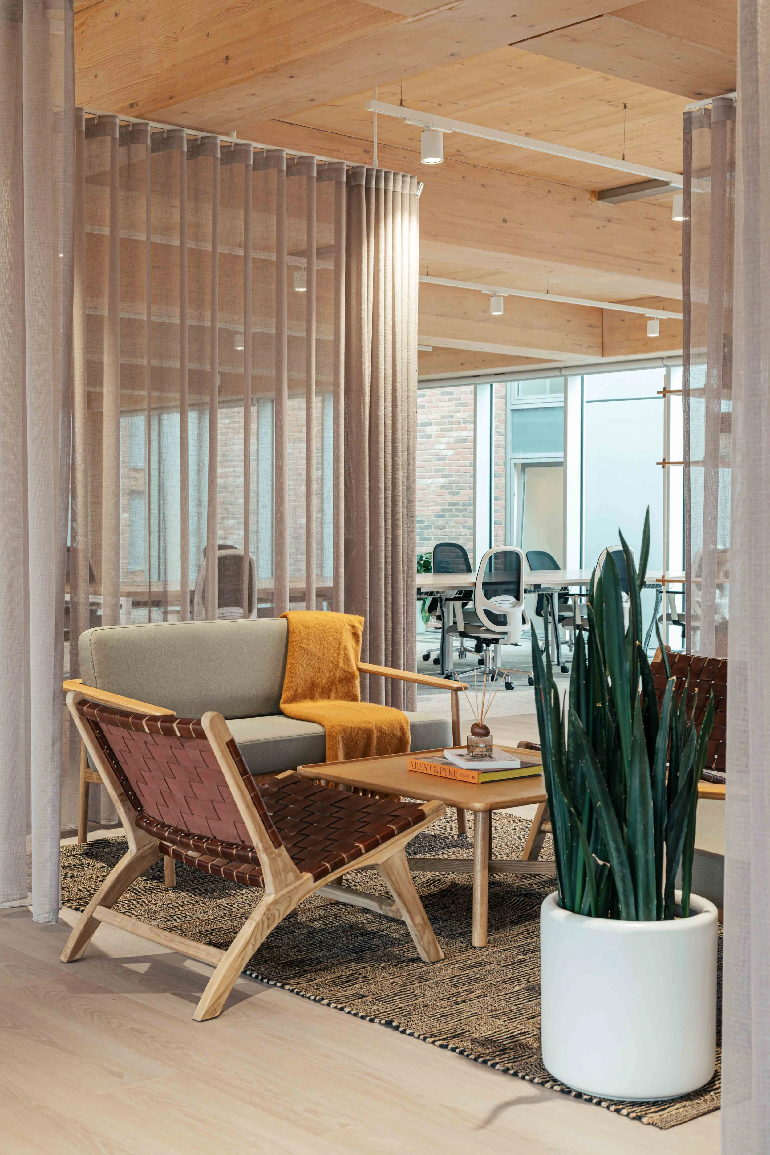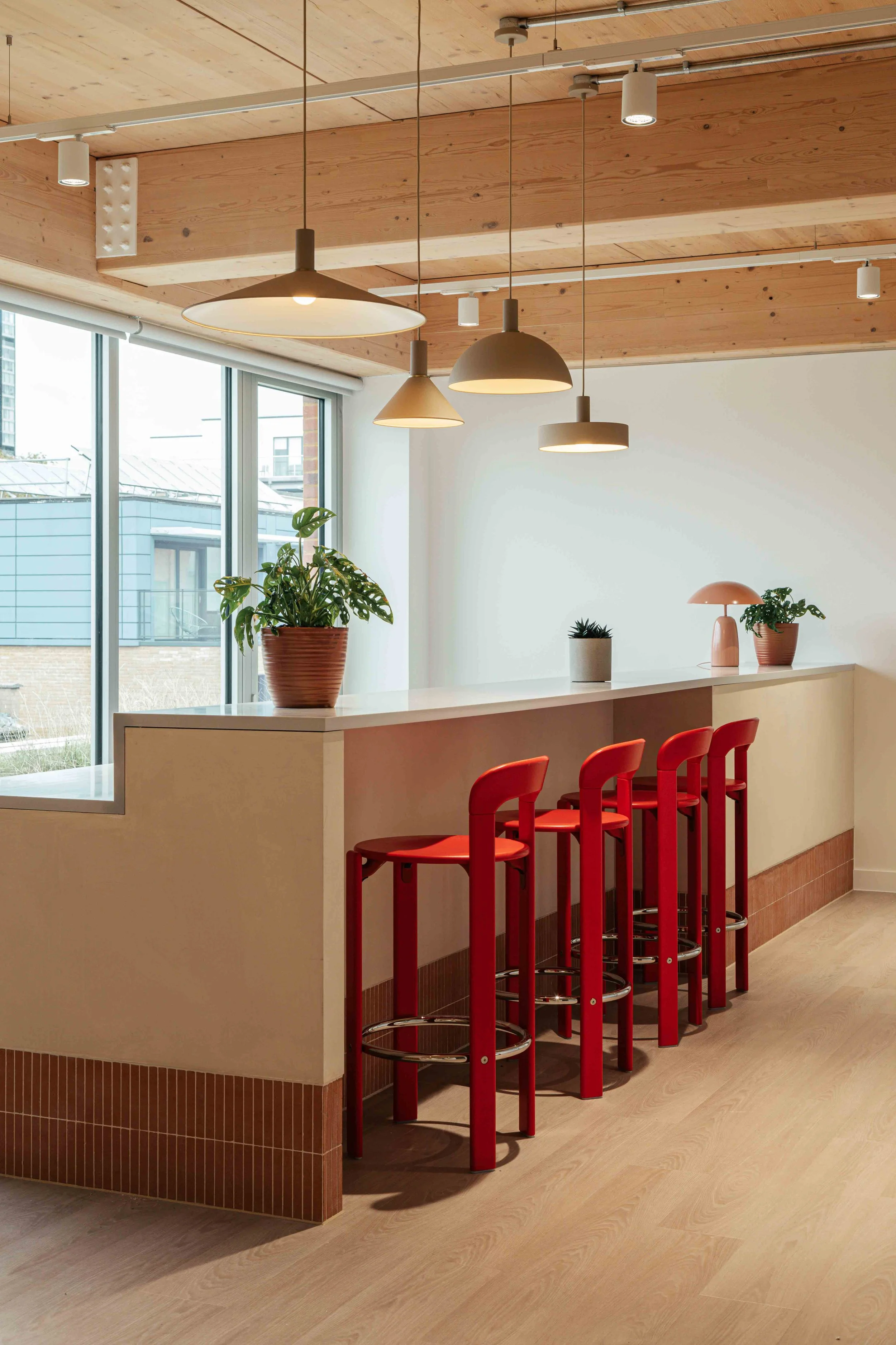 Anchored in one of London’s most desirable business districts, Technique reimagines a former gin distillery and adjacent warehouse through a sensitive, design-driven conversion that celebrates existing character while delivering modern office functionality. Rather than opting for demolition, the project retained circa 69% of the original building fabric—significantly reducing embodied carbon and construction waste—and incorporated an innovative timber extension using cross-laminated timber (CLT) and glulam columns to add substantial new floor area.