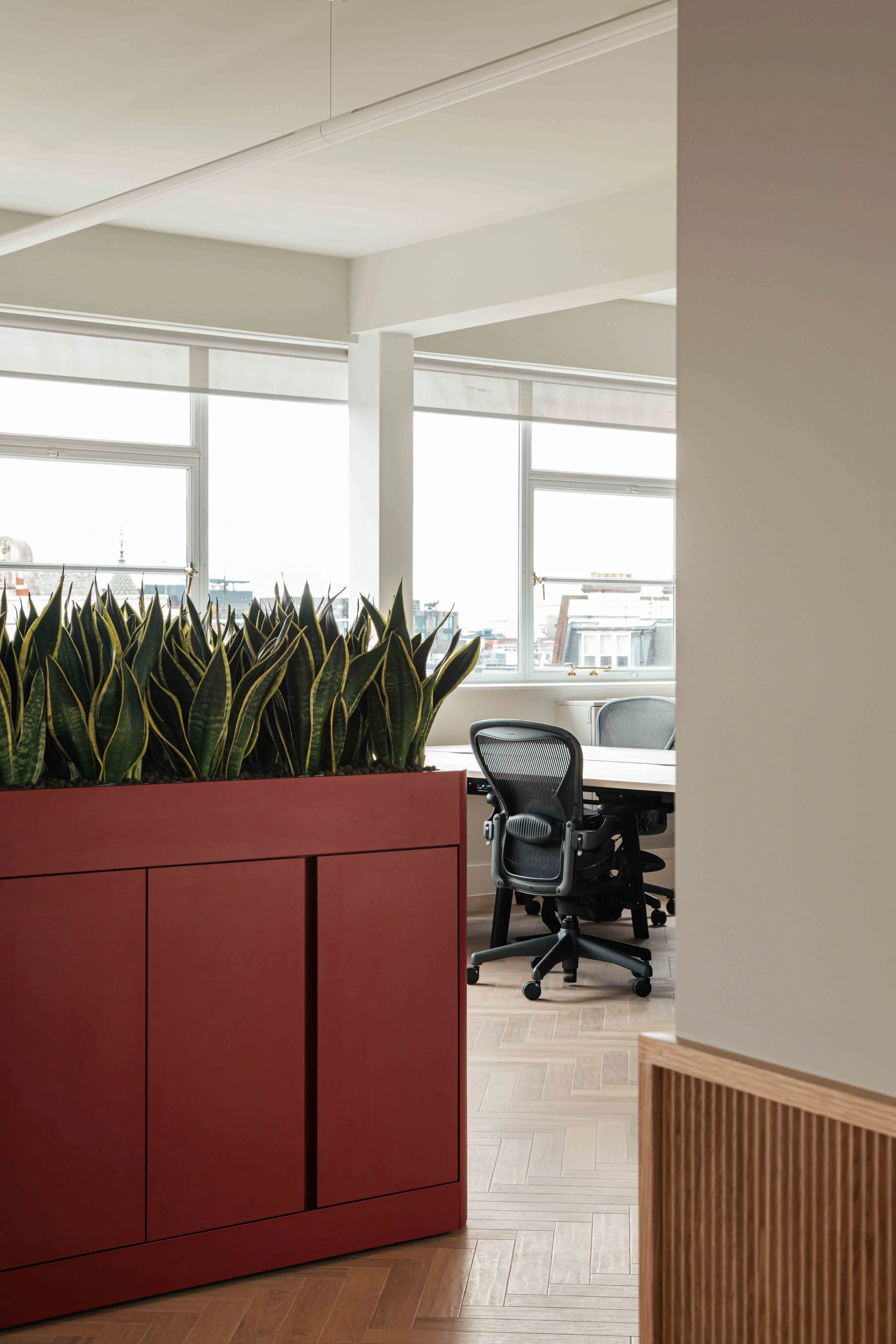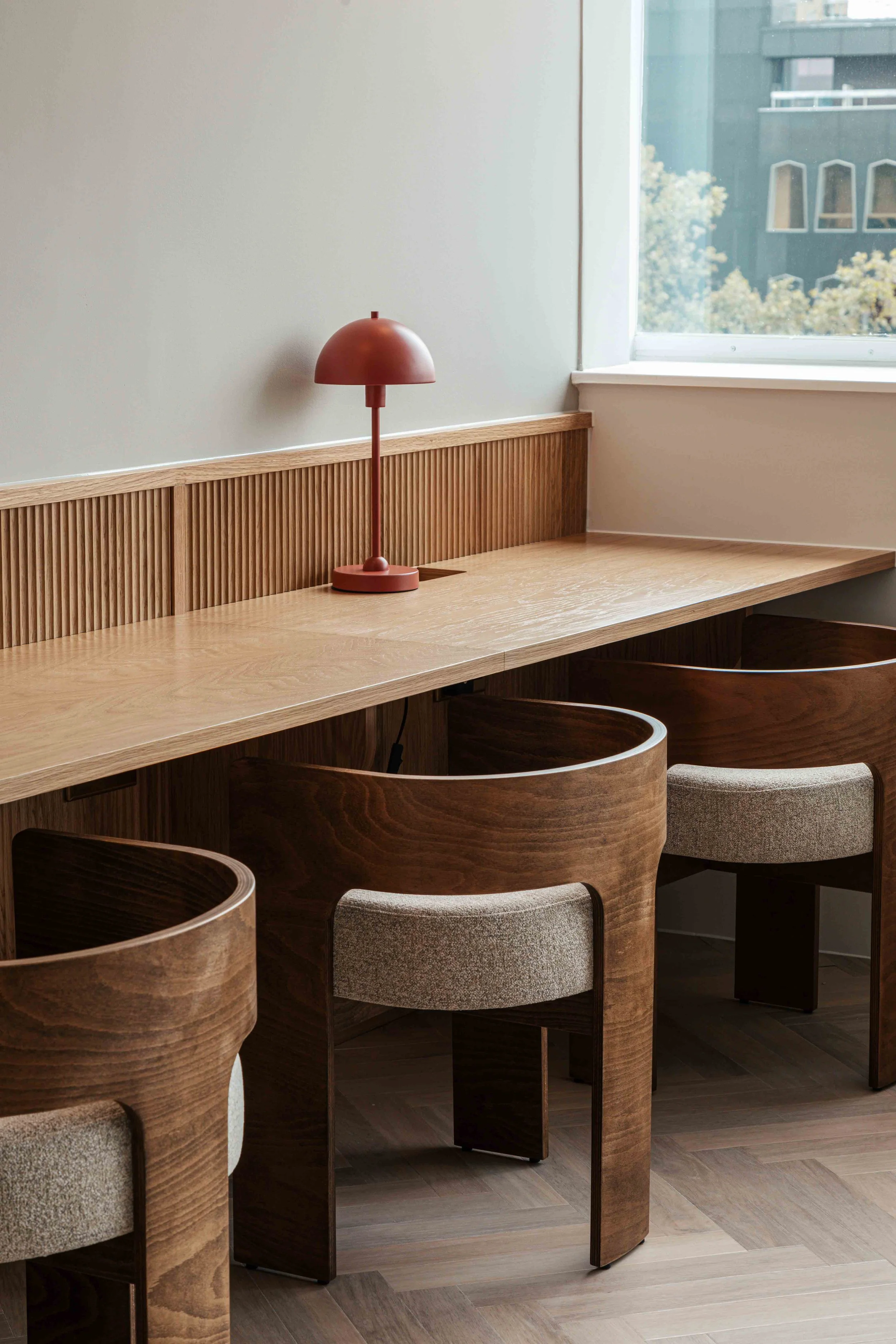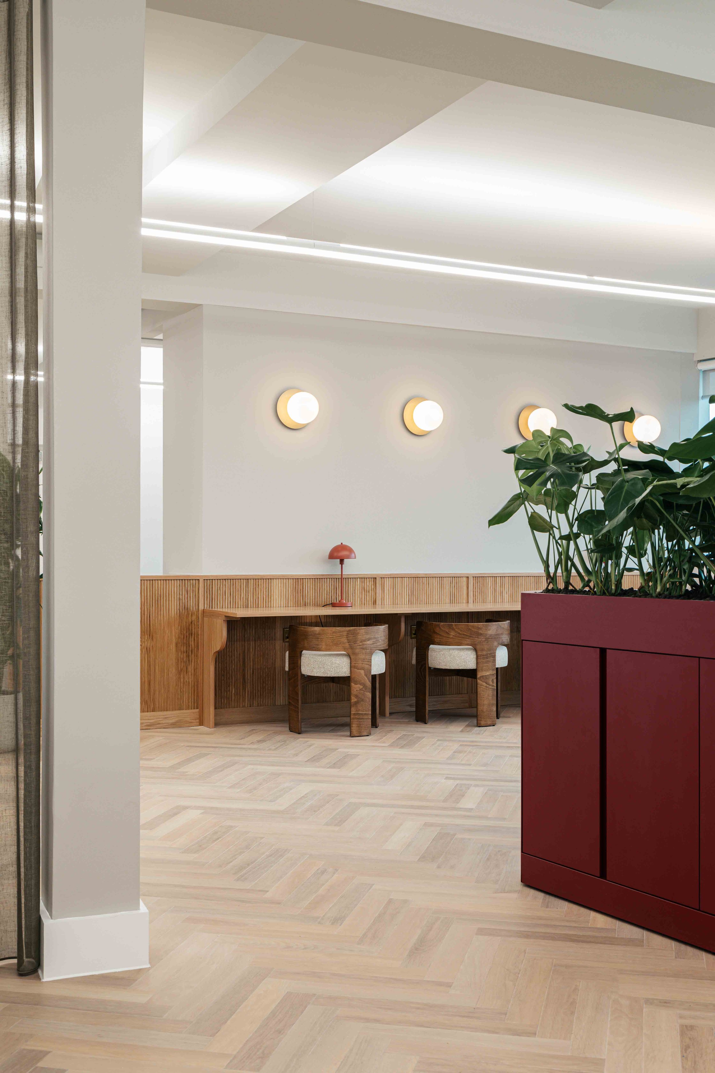 The brief called for a warm and calming arrival experience that moved away from a traditional corporate lobby towards something more inviting and design-led. A bespoke tiled floor anchors the space, adding character and identity from the moment you enter. Warm timber panelling was introduced to soften the environment and bring a residential quality to the reception, creating a welcoming backdrop for the desk and waiting area. Bespoke banquette seating completes the scheme, offering a comfortable, crafted touchpoint that enhances both functionality and atmosphere. Together, these elements deliver a refined, comfortable, and distinctive entrance that sets the tone for the rest of the building.