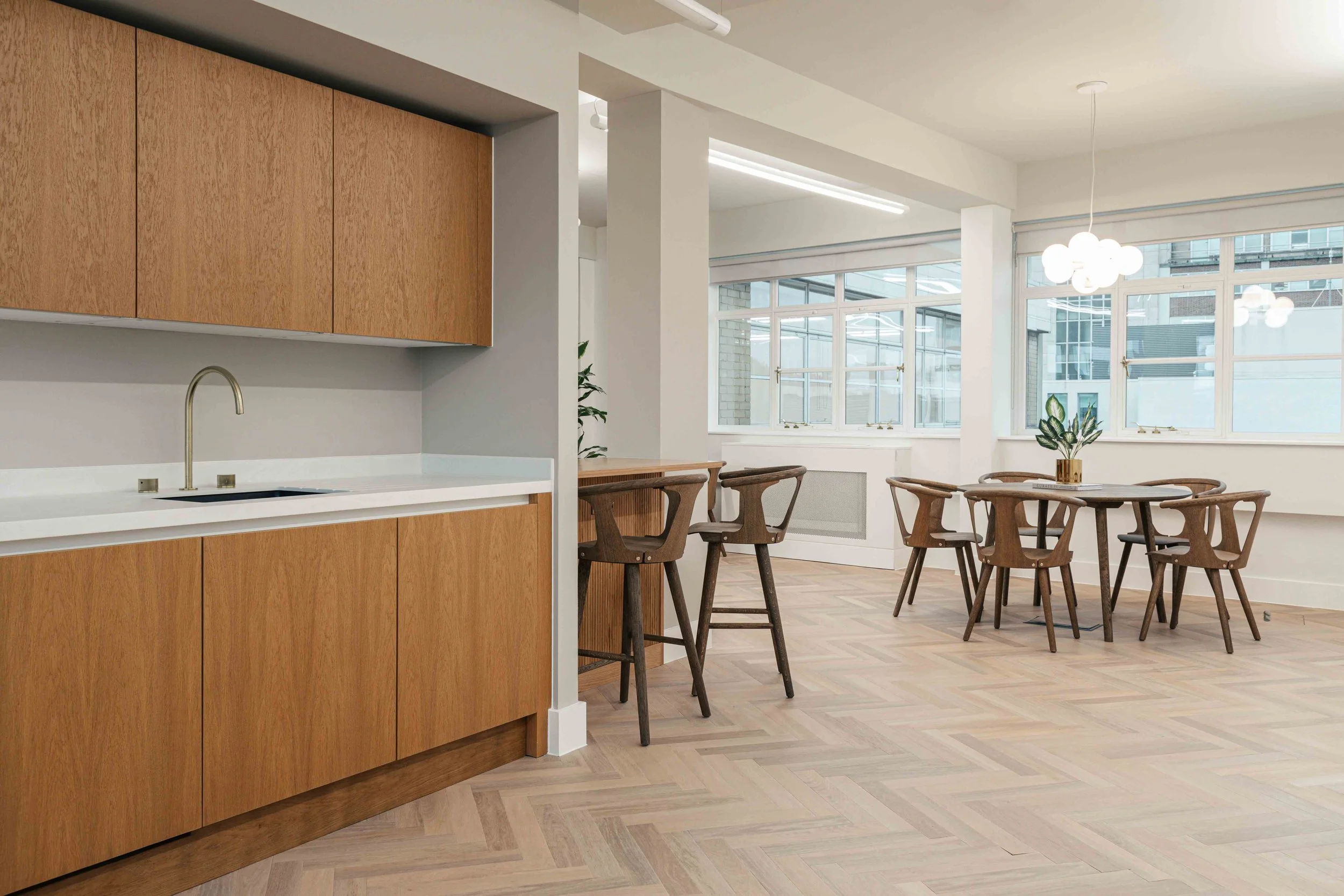 Located at 44–46 Southwark Street, the building sits at the crossroads of Borough Market, Bankside, and London Bridge, an area known for its cultural vibrancy, creativity, and rich material palette. This context played a central role in shaping the design. The warmth of the timber panelling, the handcrafted feel of the bespoke tiles, and the inviting, hospitality-led atmosphere all draw inspiration from Southwark’s blend of heritage and modernity. The result is a reception and tenant lounge that feels rooted in its surroundings, echoing the texture, energy, and character that define the neighbourhood.