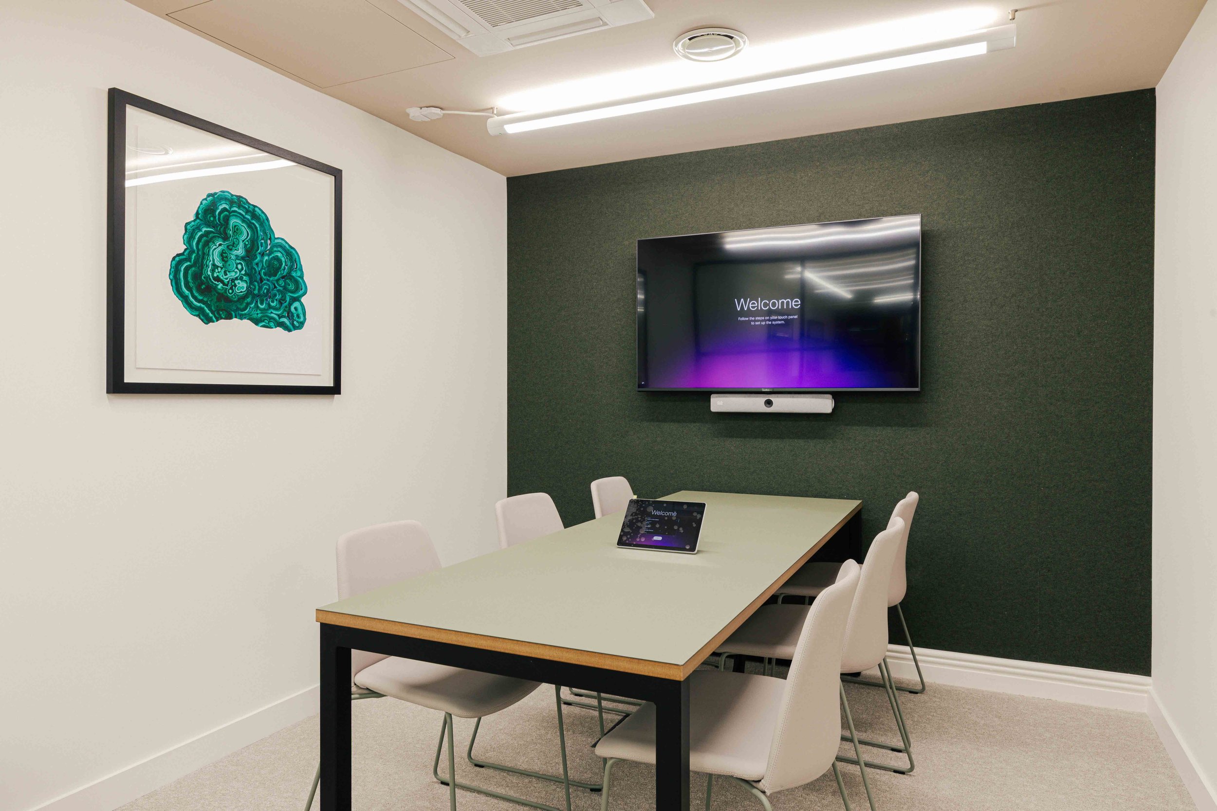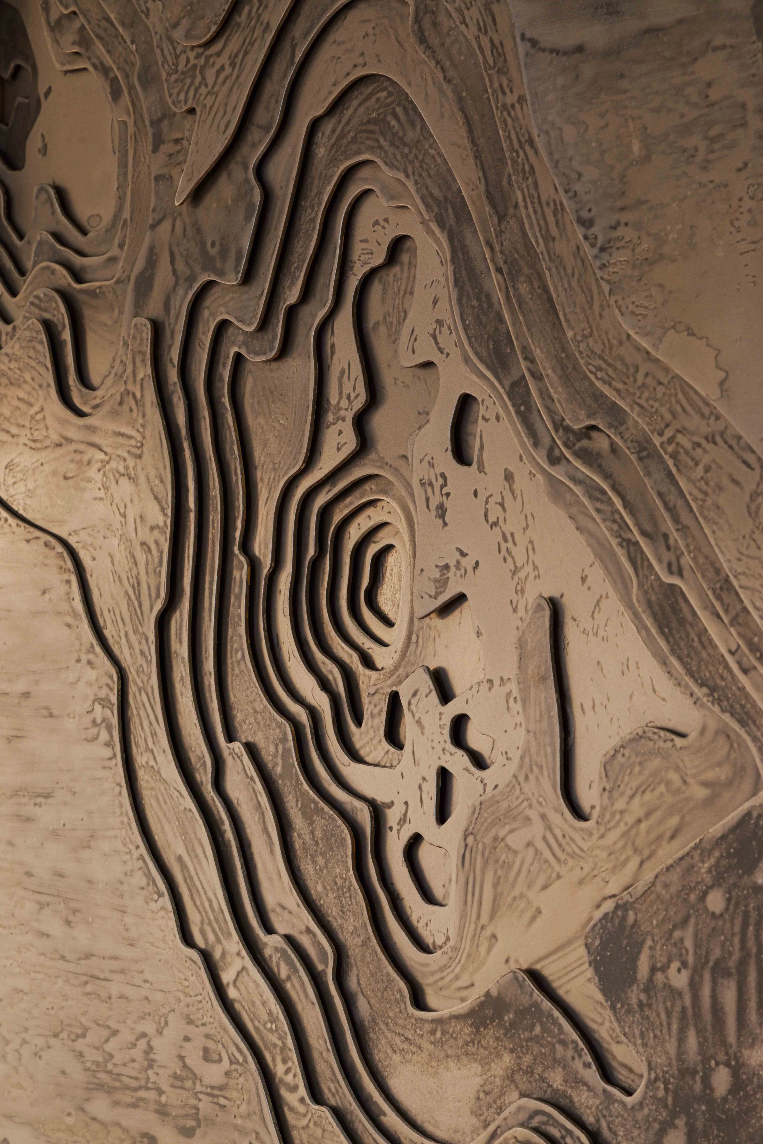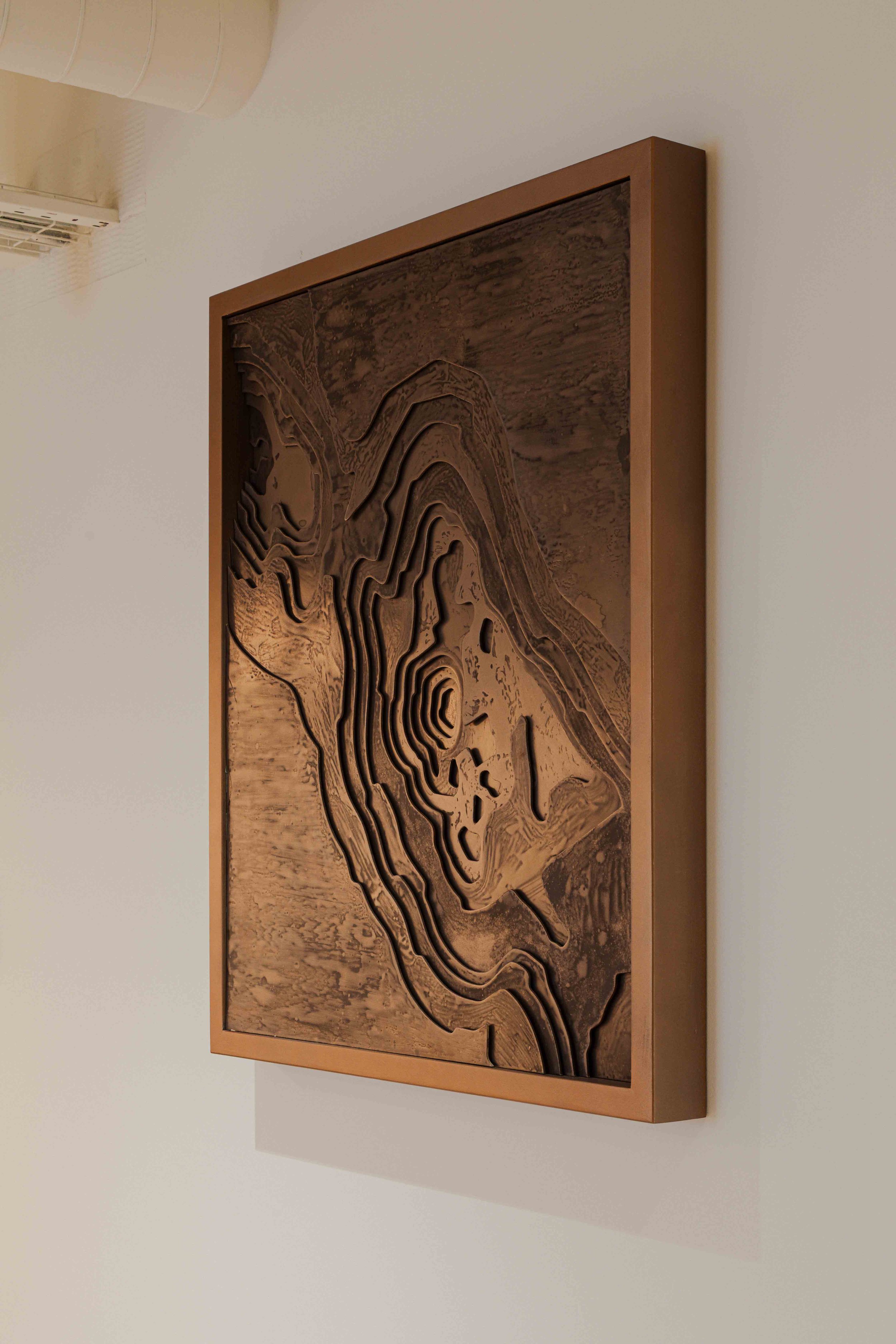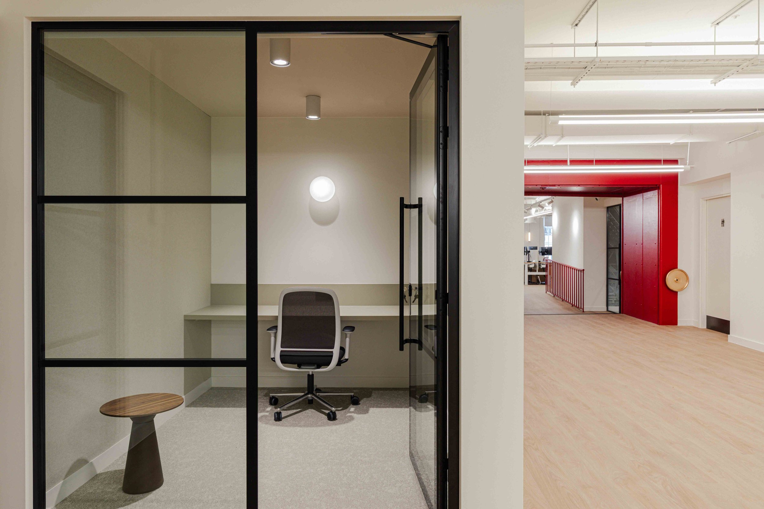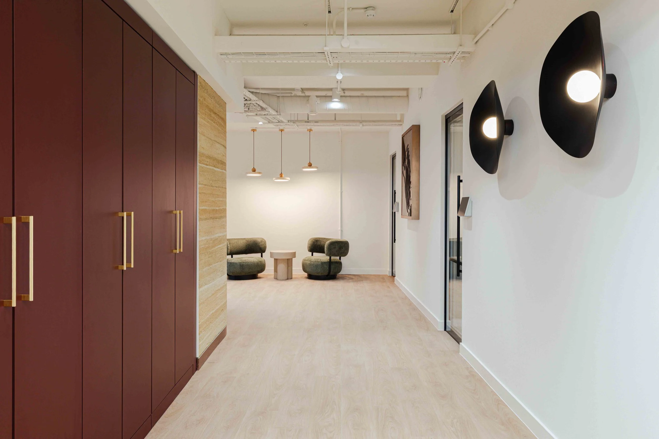 Hero moments throughout the office elevate the overall experience. Bespoke artwork and three dimensional sculptural pieces crafted from metal were carefully curated to celebrate the landscapes and materials of mining, bringing a sense of narrative and identity into the space. These elements act as visual focal points, reinforcing the brand story and creating a memorable headquarters environment.