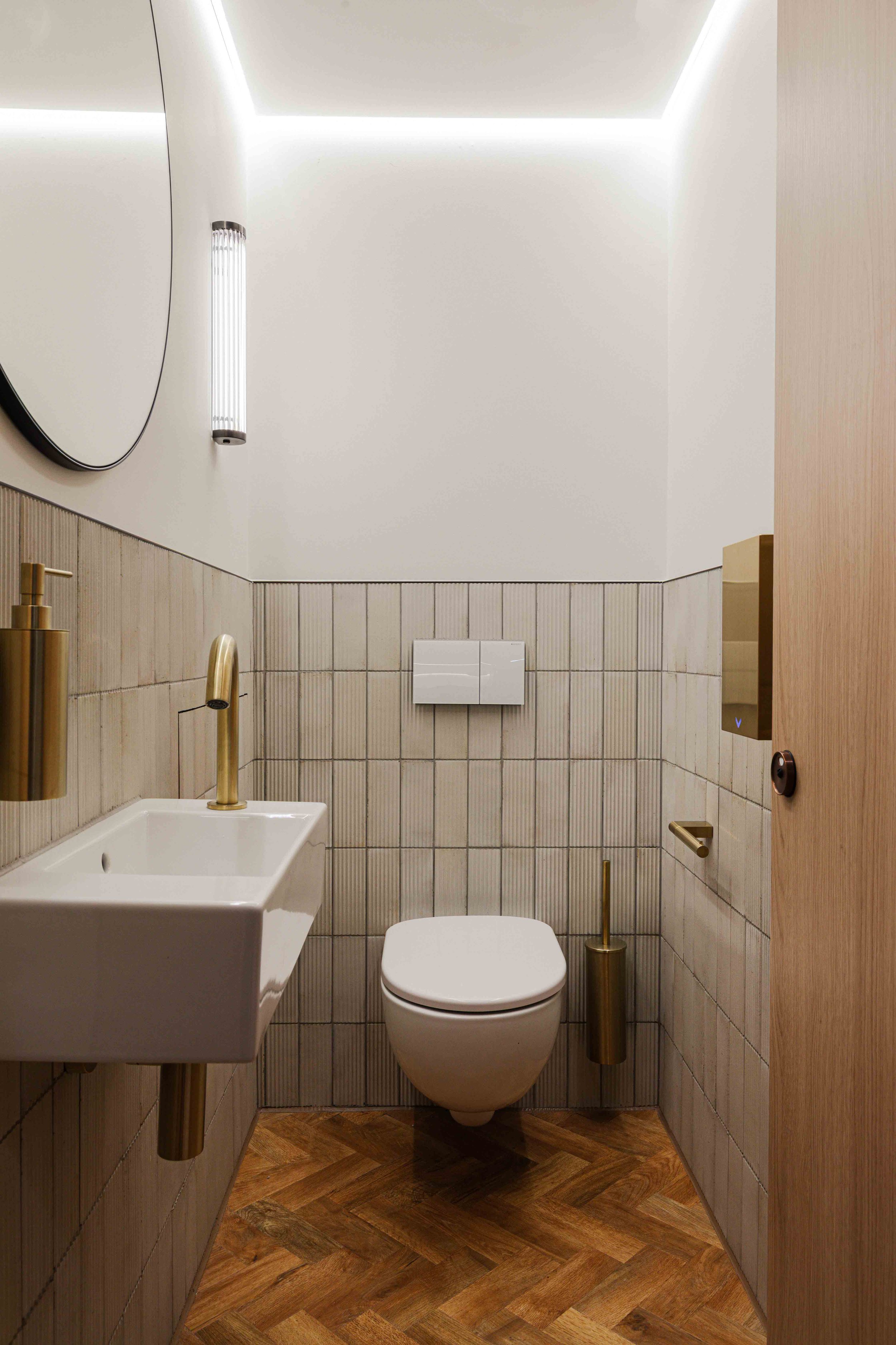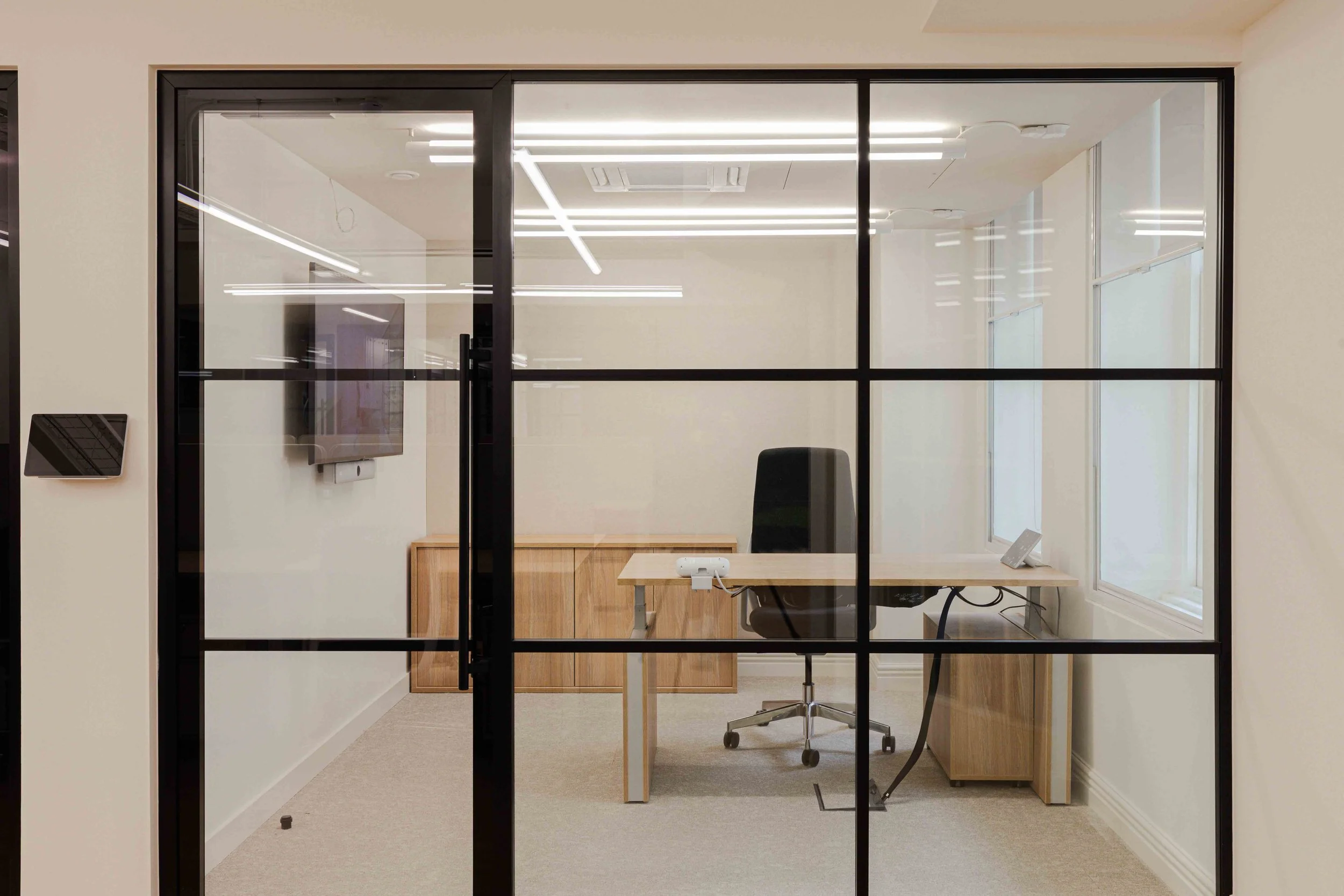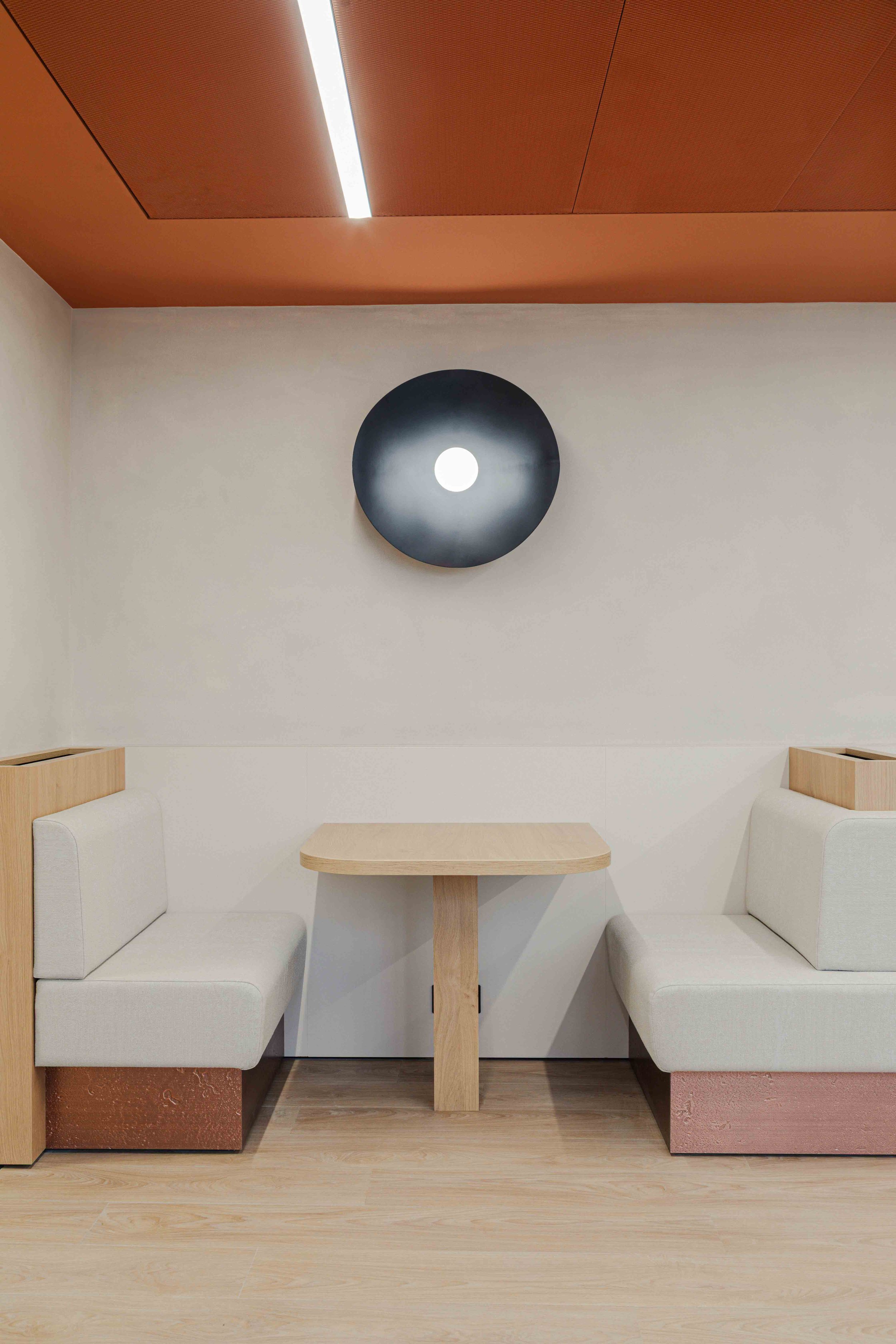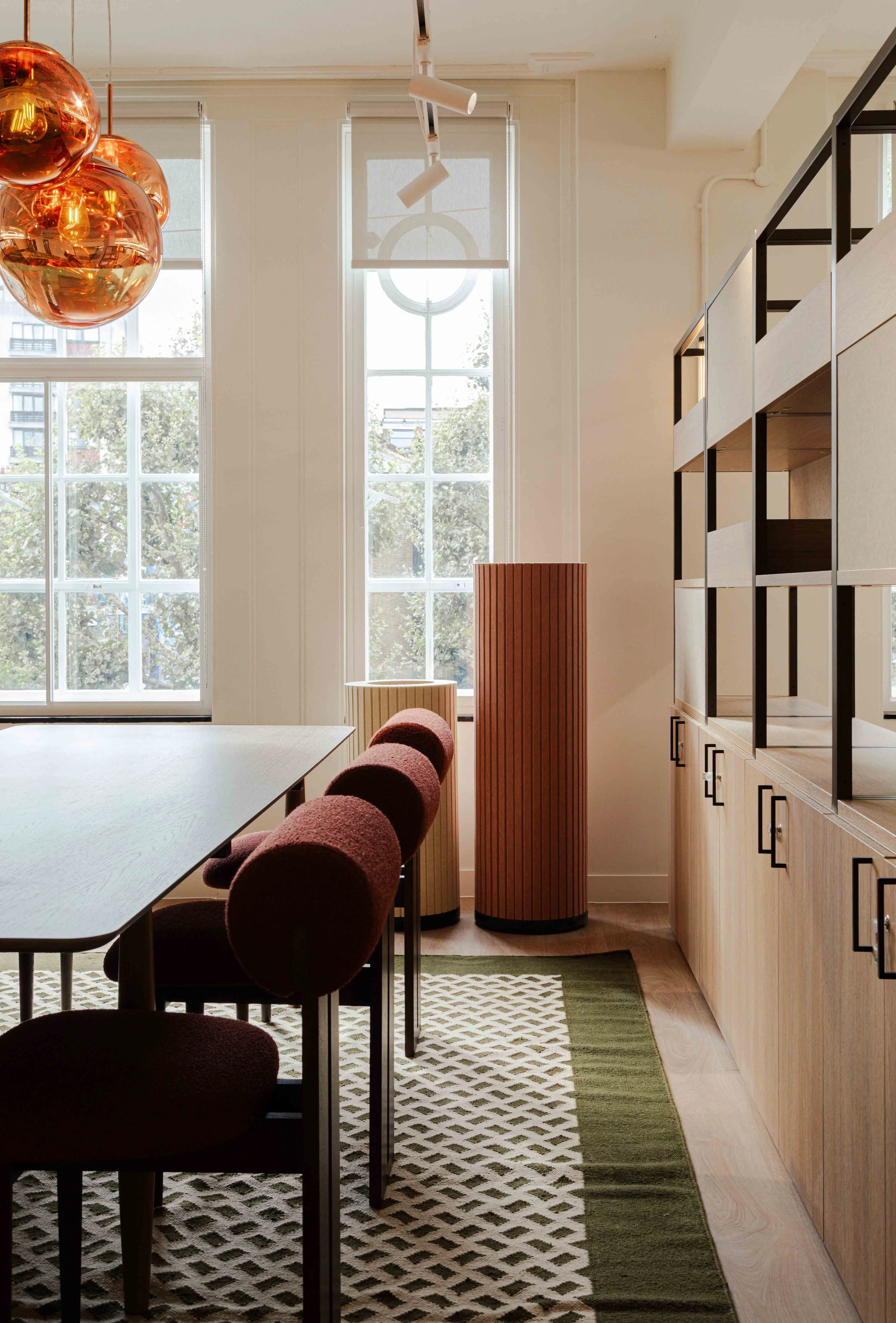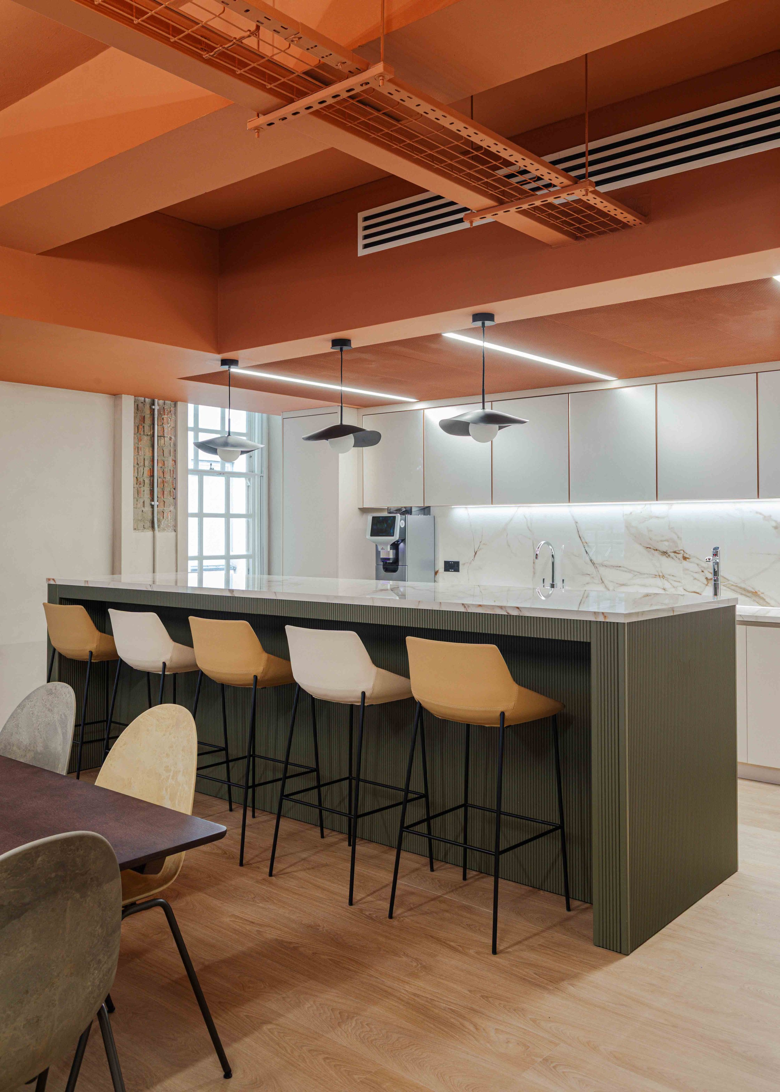 Materiality and colour played a central role in expressing the FQM brand. The scheme experiments with bolder colour accents and draws subtle inspiration from natural materials associated with mining, including zinc, copper and azurite. These references are layered thoughtfully through finishes, textures and detailing, offering moments of richness and depth without overwhelming the workspace. The result is an interior that feels grounded, tactile and distinctive, while remaining polished and professional.
