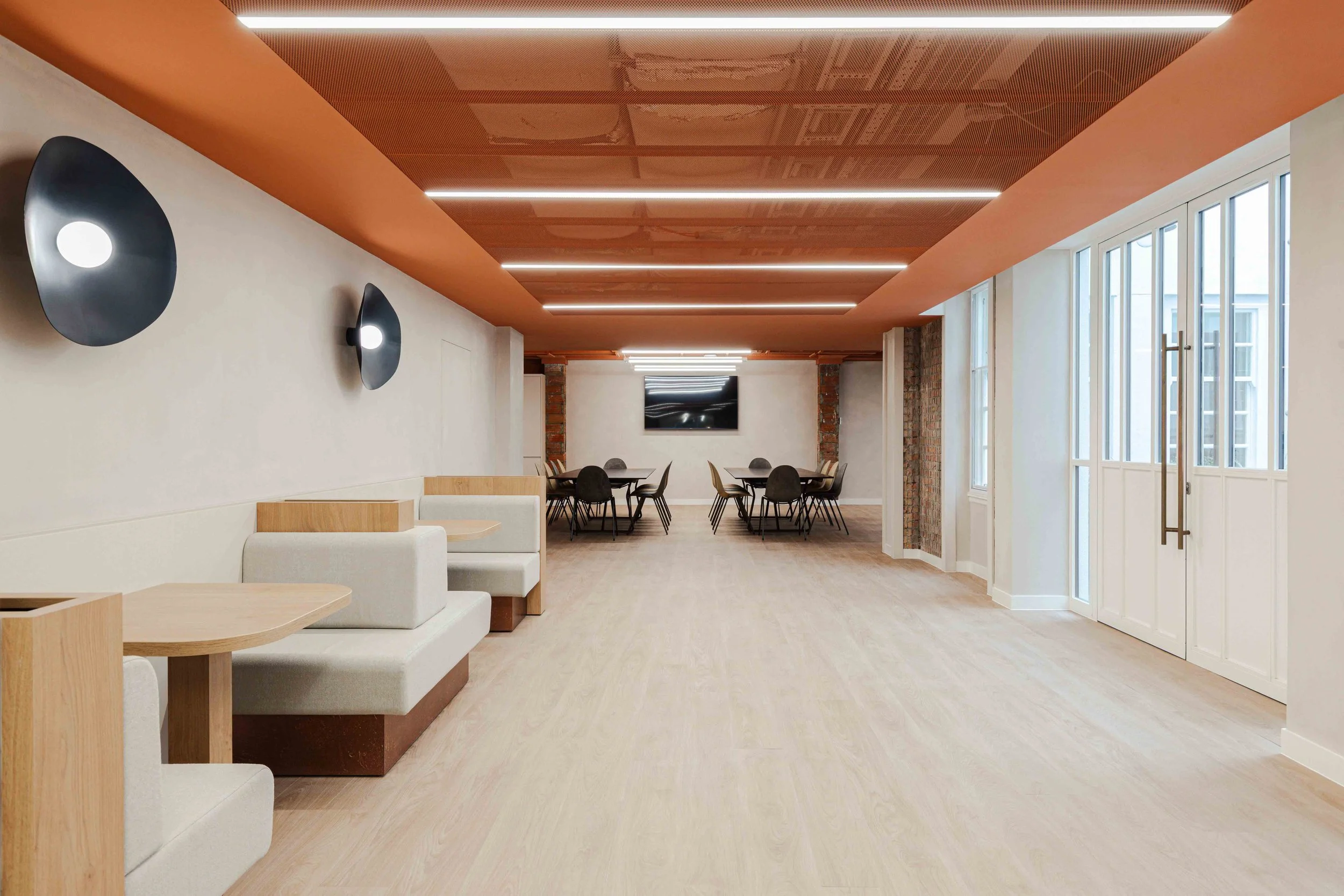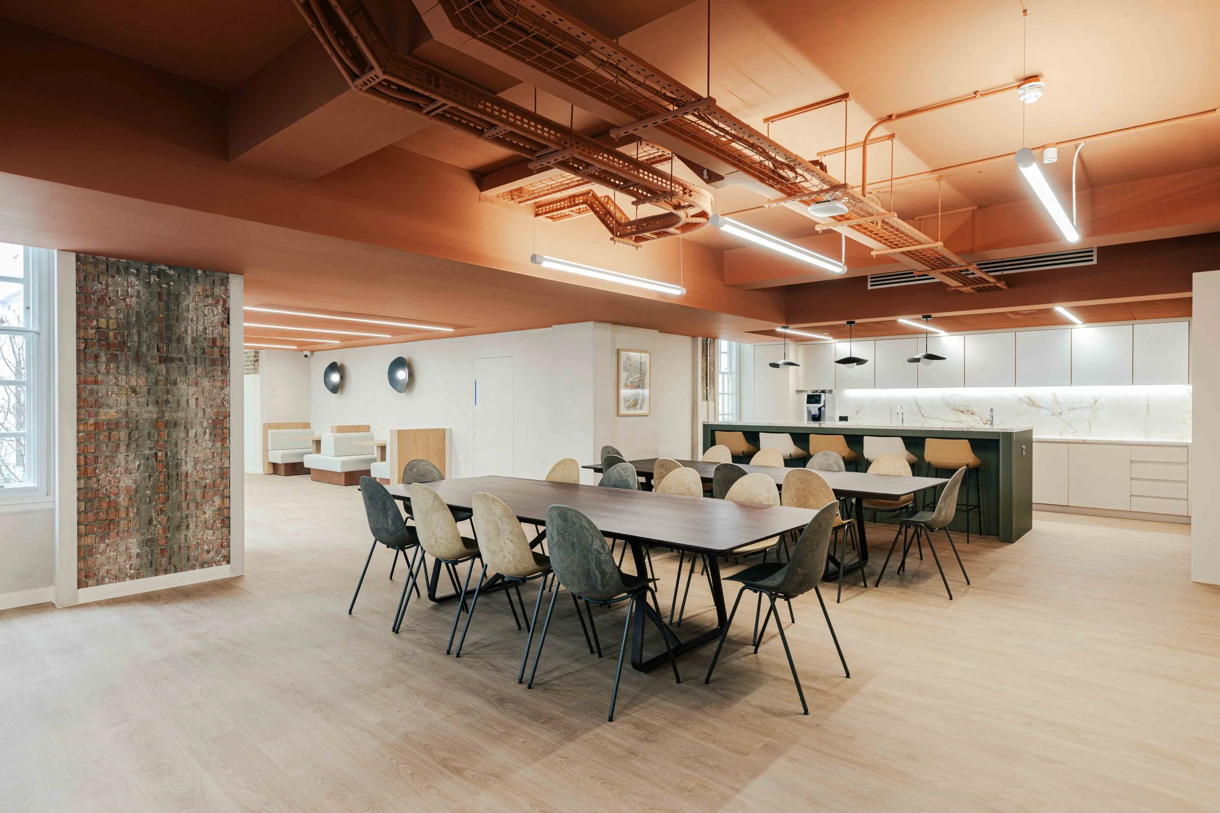 The space planning prioritised flexibility and collaboration, with enhanced breakout areas designed to encourage interaction and connection between teams. These areas were positioned as social anchors within the floorplate, supporting informal meetings, downtime, and creative exchange, while allowing focused workspaces and meeting rooms to retain a more composed and refined atmosphere.