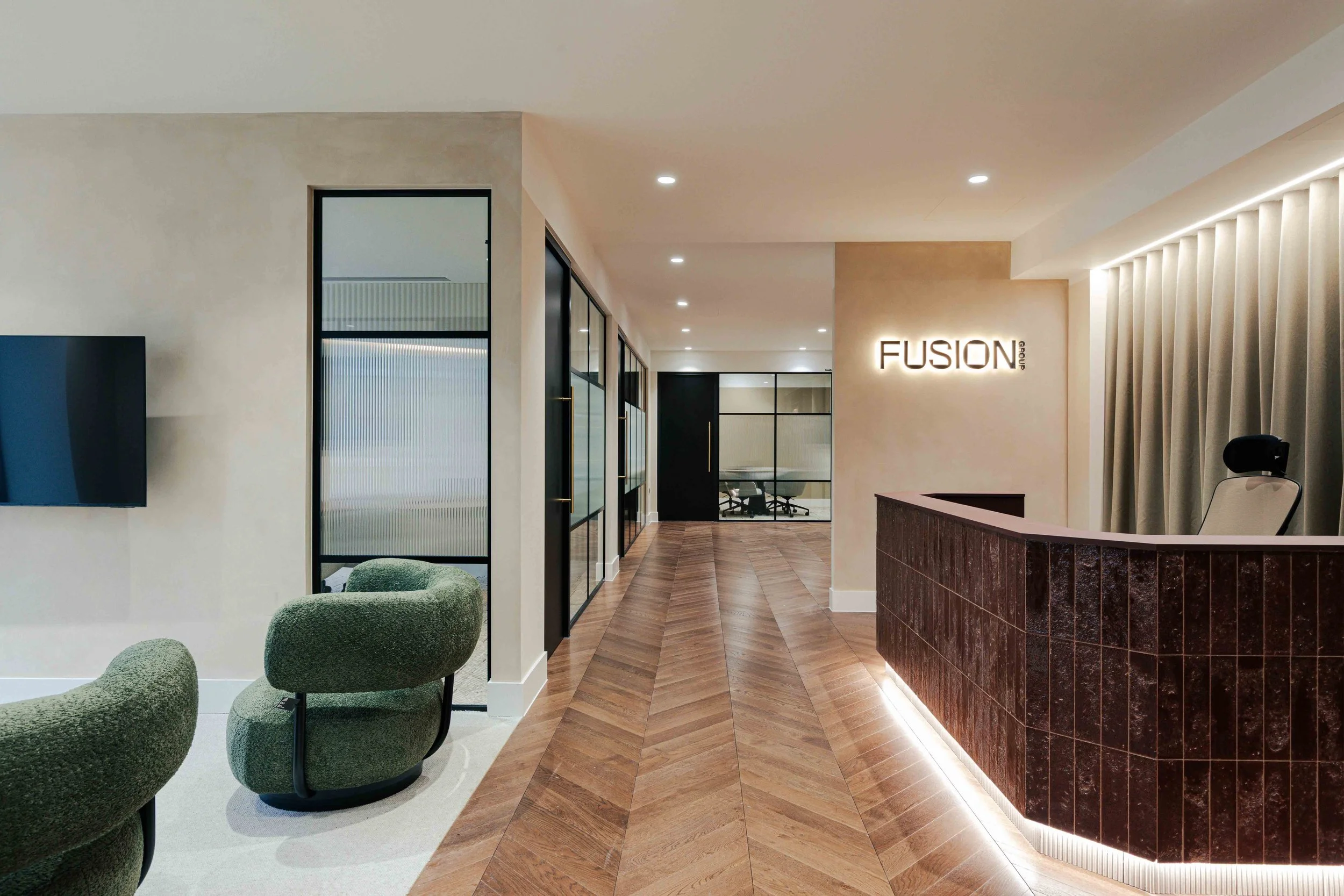 The result is a calm, flexible, and characterful workspace that seamlessly fuses heritage and contemporary design. Original architectural qualities are celebrated, while modern interventions introduce a timeless sophistication. Together, these elements create an environment that supports modern working practices while reflecting the integrity, creativity, and design ambition of the Fusion Group.