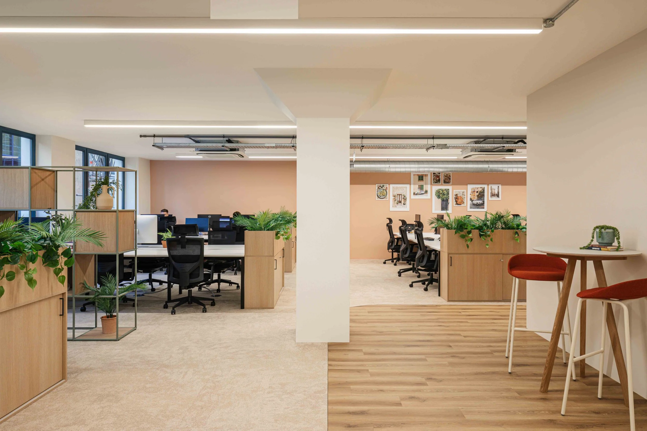 The brief called for a warm and calming arrival experience that moved away from a traditional corporate lobby towards something more inviting and design-led. A bespoke tiled floor anchors the space, adding character and identity from the moment you enter. Warm timber panelling was introduced to soften the environment and bring a residential quality to the reception, creating a welcoming backdrop for the desk and waiting area. Bespoke banquette seating completes the scheme, offering a comfortable, crafted touchpoint that enhances both functionality and atmosphere. Together, these elements deliver a refined, comfortable, and distinctive entrance that sets the tone for the rest of the building.