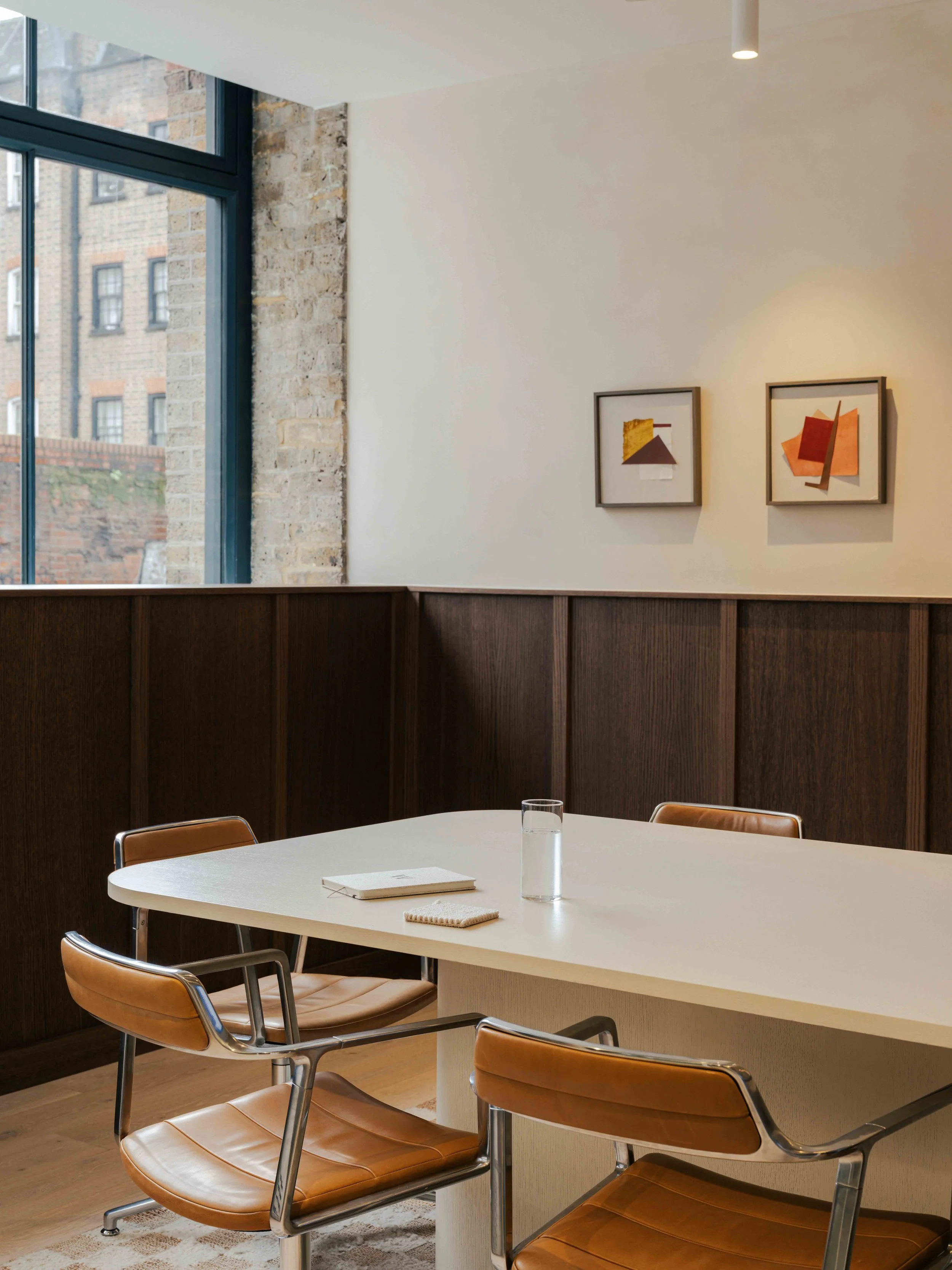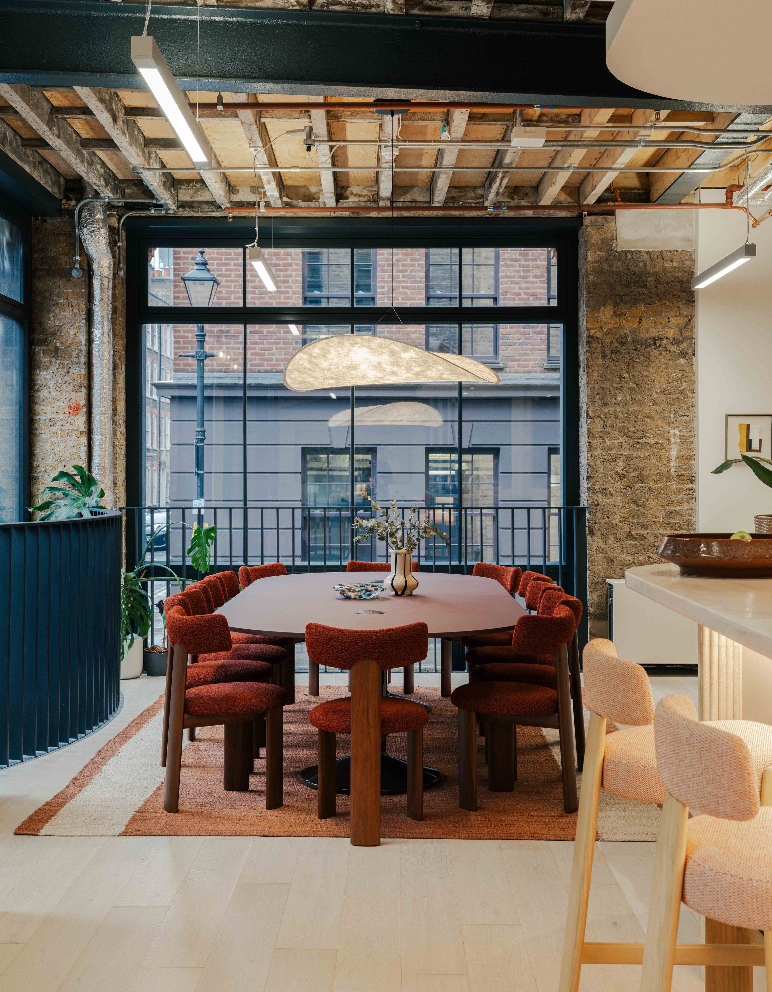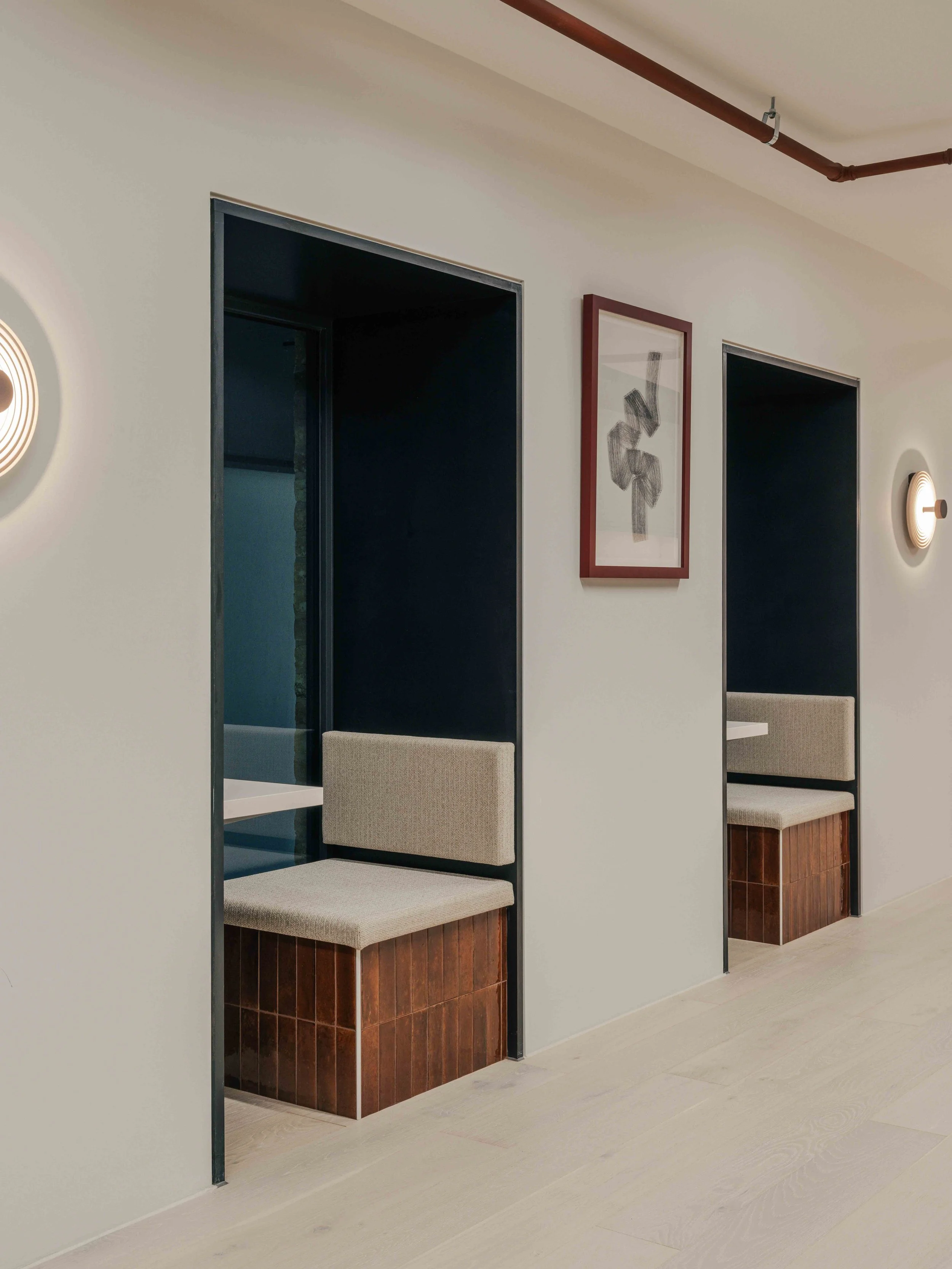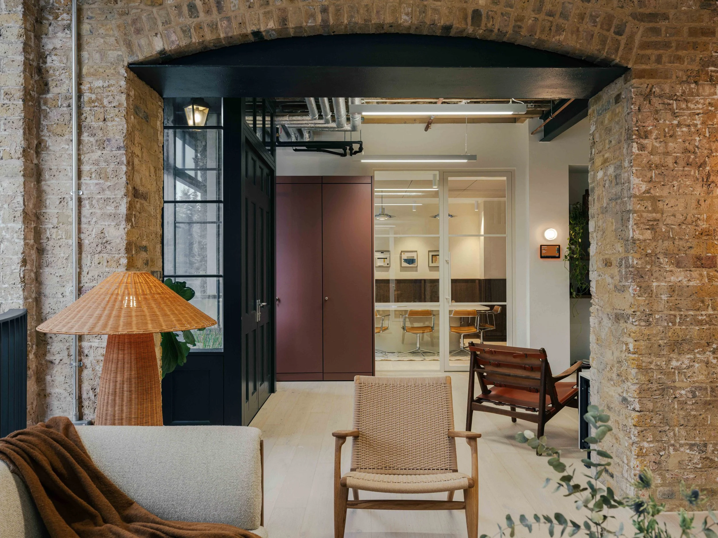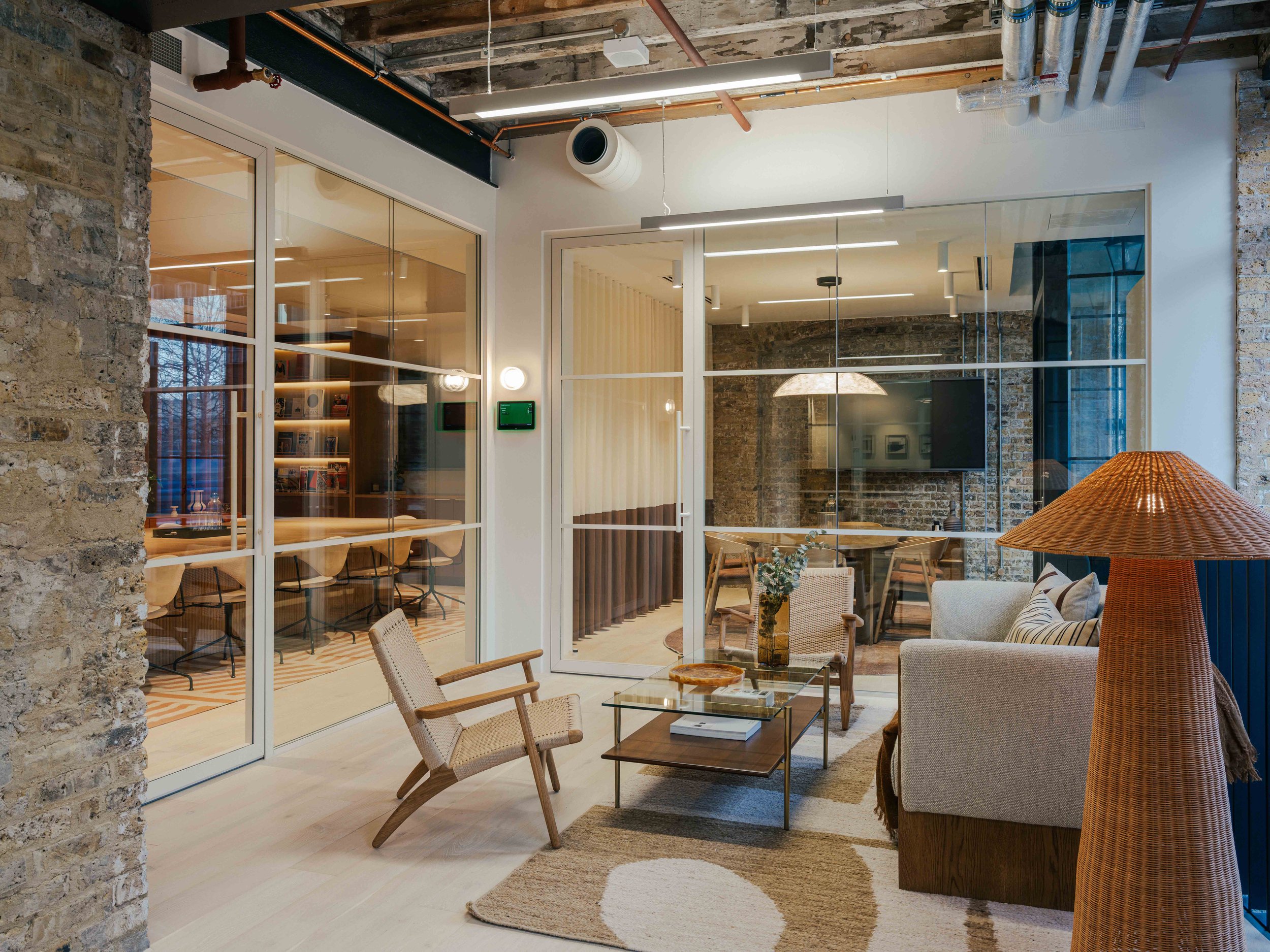 The creative direction for the space was to honour and celebrate the building’s heritage and architectural detailing, while introducing a calm and timeless palette that would allow moments of playful personality to emerge with confidence. It was important to retain the original warehouse features, exposed brickwork, Crittall windows and visible services that speak to its material honesty. Against this backdrop, we introduced layered, refined elements, clean lined ceilings, warm timber panelling and polished finishes, creating a thoughtful juxtaposition that softens the industrial shell with a sense of sophistication and calm.