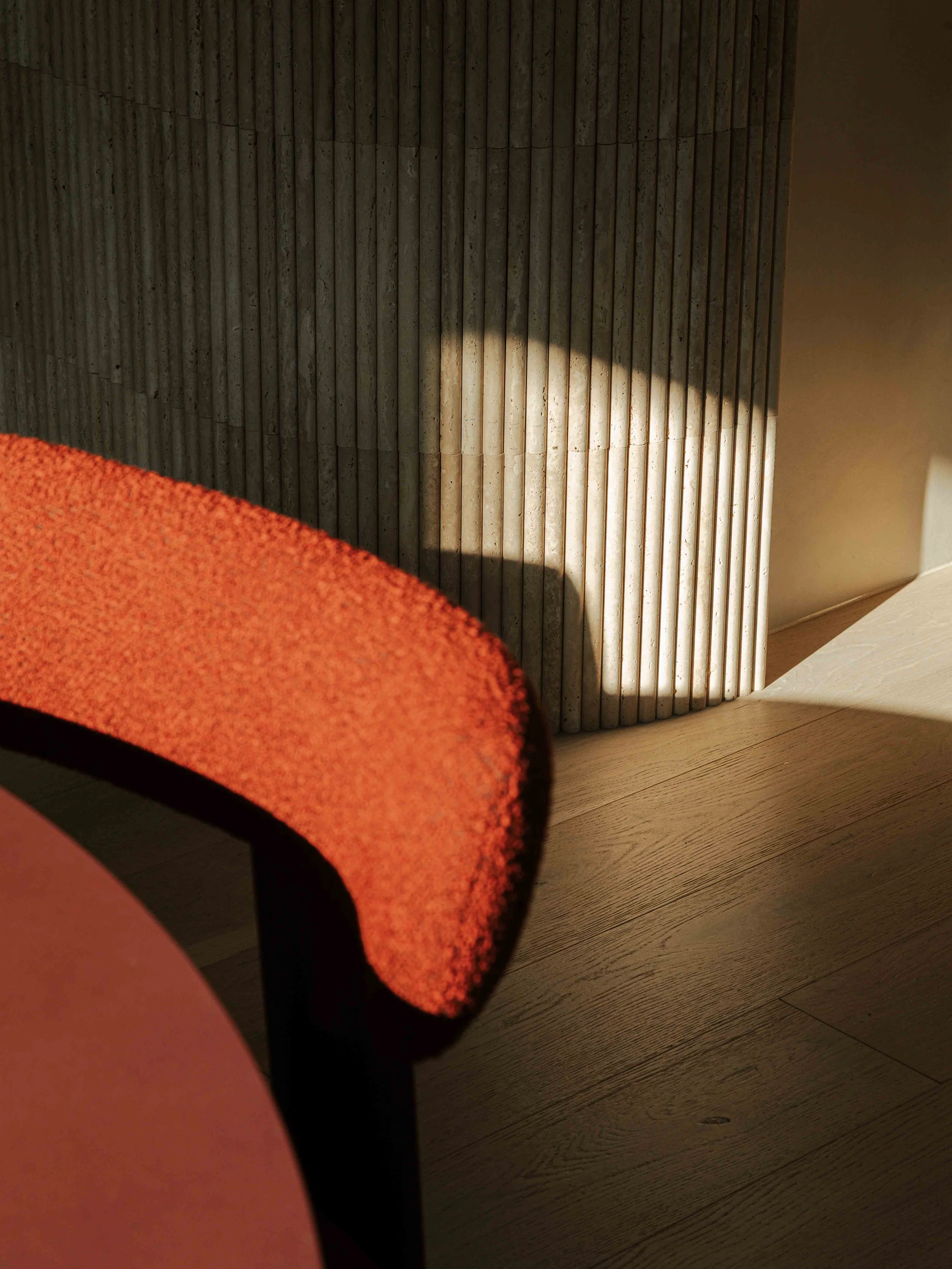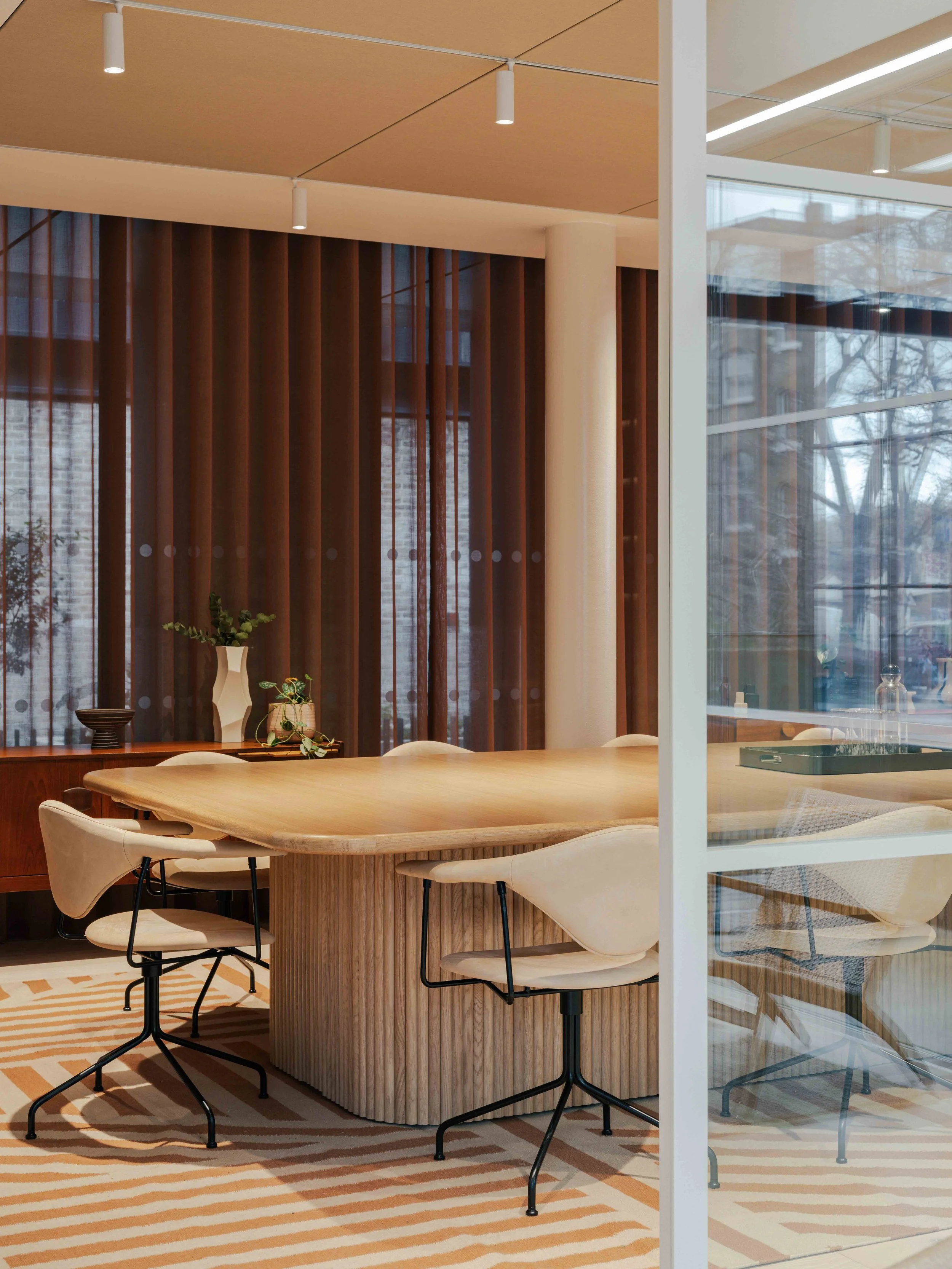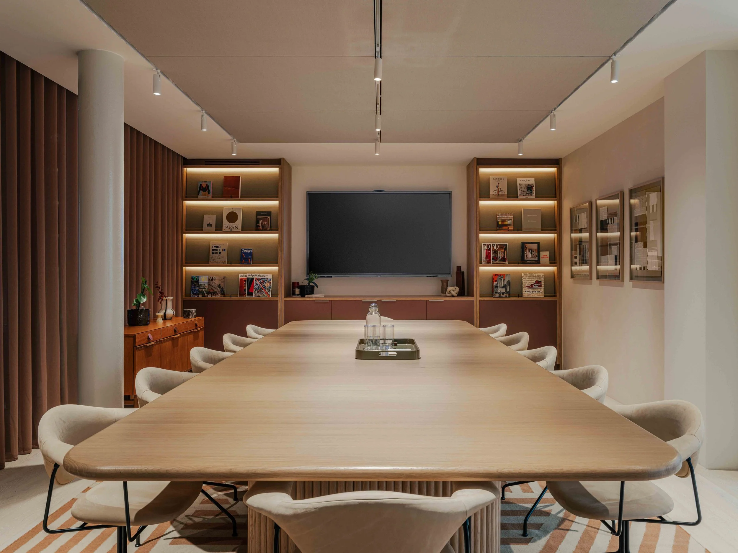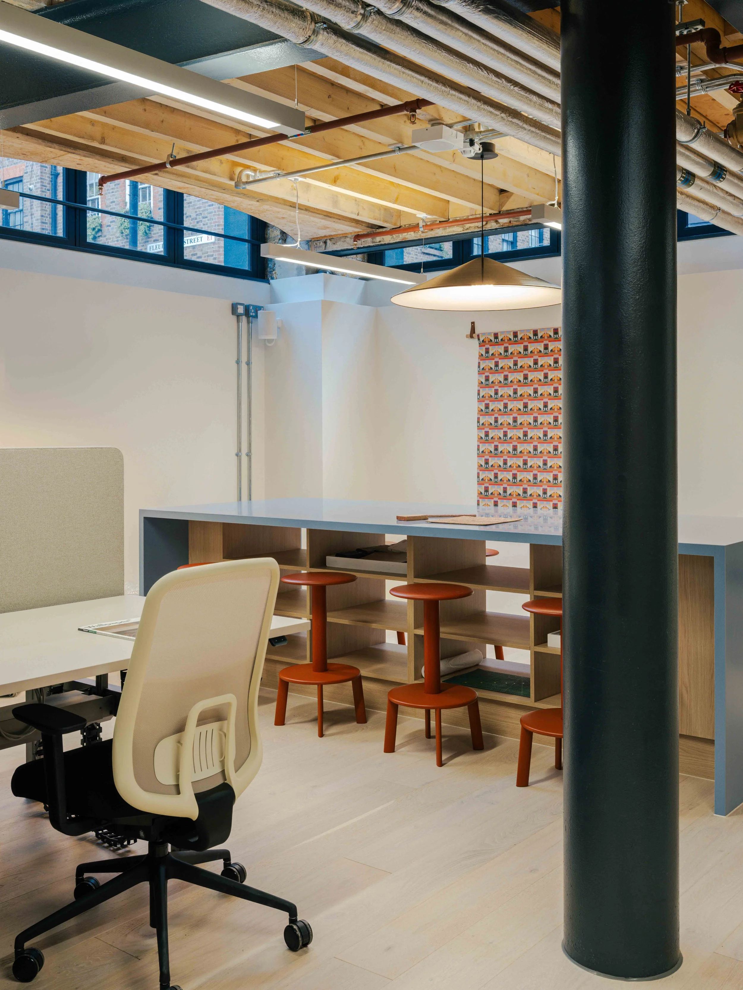 Designed with flexibility at its core, the studio offers a variety of spaces, a generous breakout area for gathering and hosting, alongside zones dedicated to focus, collaboration and informal meetings. A dedicated design library sits at the heart of the studio, encouraging material exploration and playful creativity for the team.